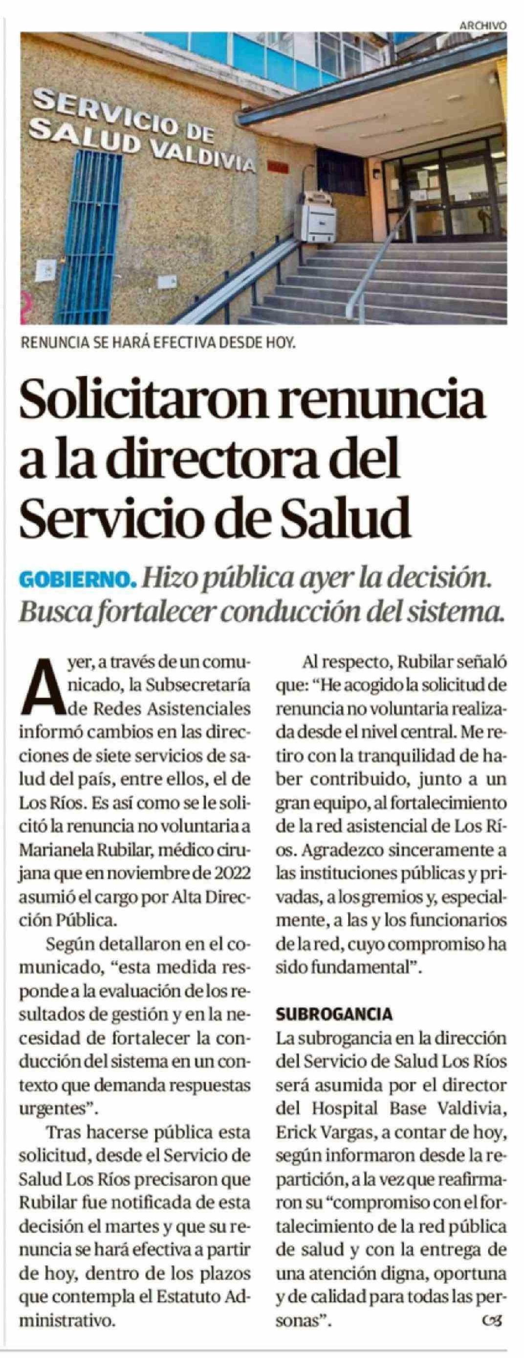 Solicitaron renuncia a la directora del Servicio de Salud