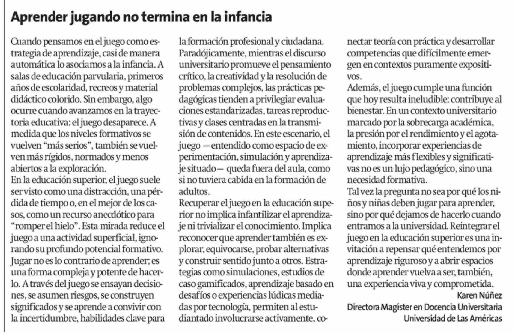 Columnas de Opinión: Aprender jugando no termina en la infancia