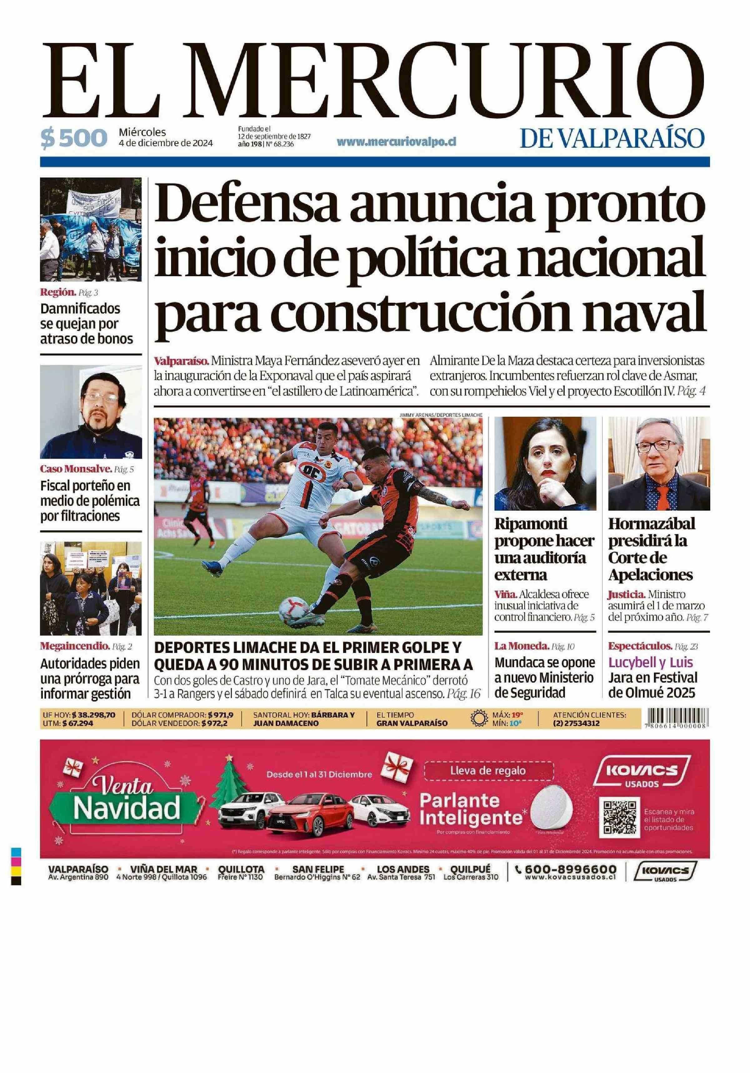 PORTADA EL MERCURIO DE VALPARAÍSO CHILE