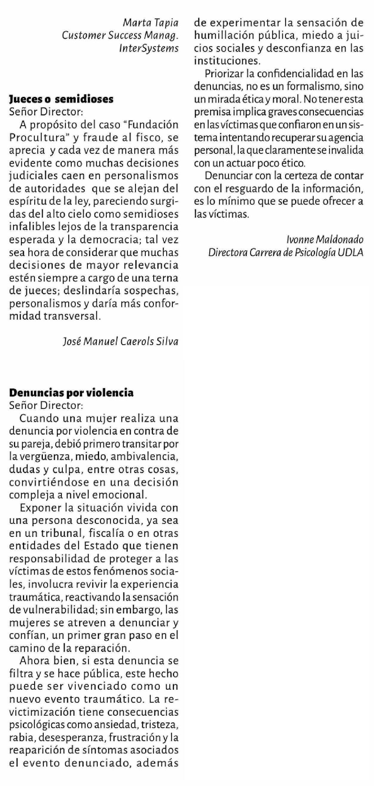 CARTAS: Denuncias por violencia