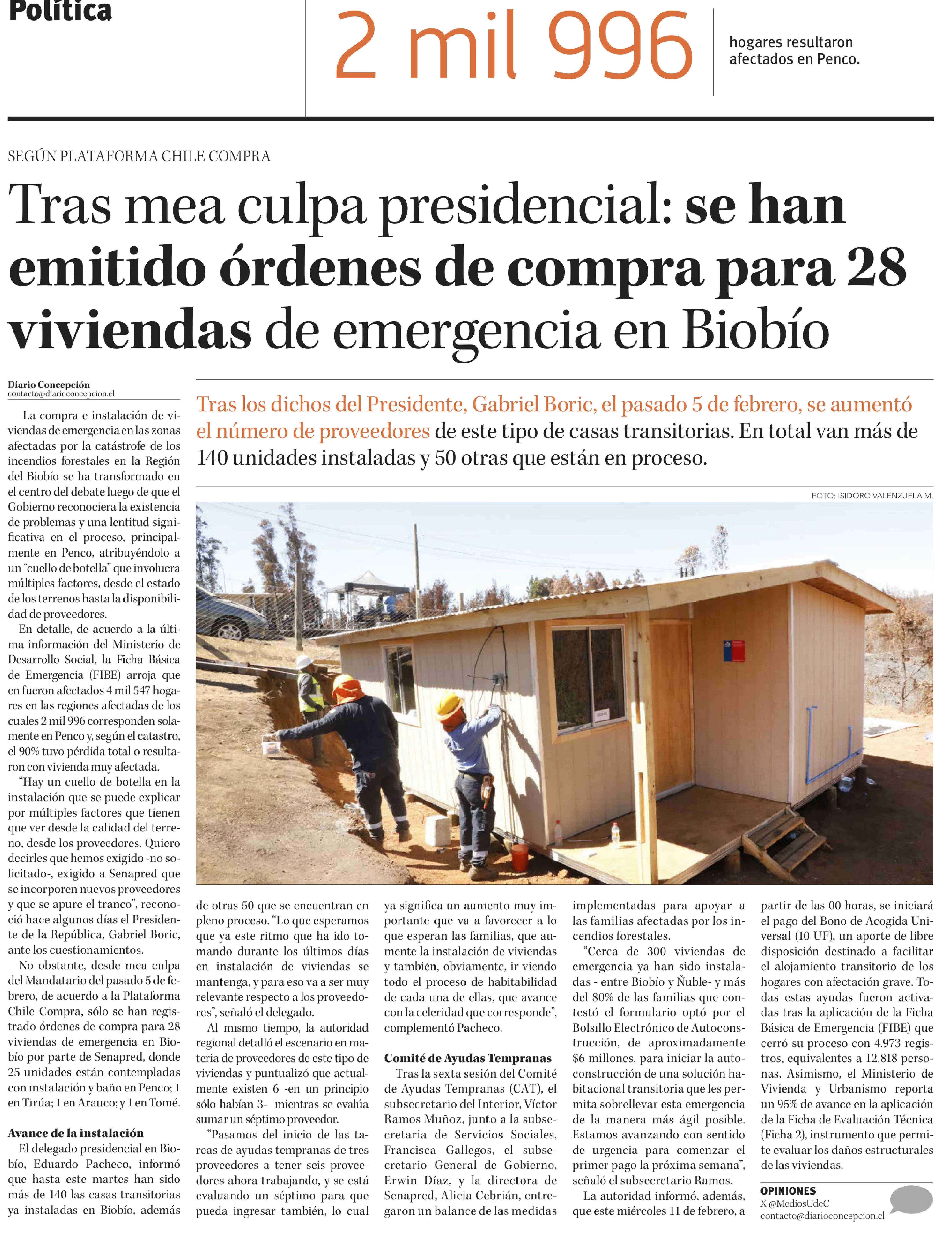Tras mea culpa presidencial: se han emitido órdenes de compra para 28 viviendas de emergencia en Biobío