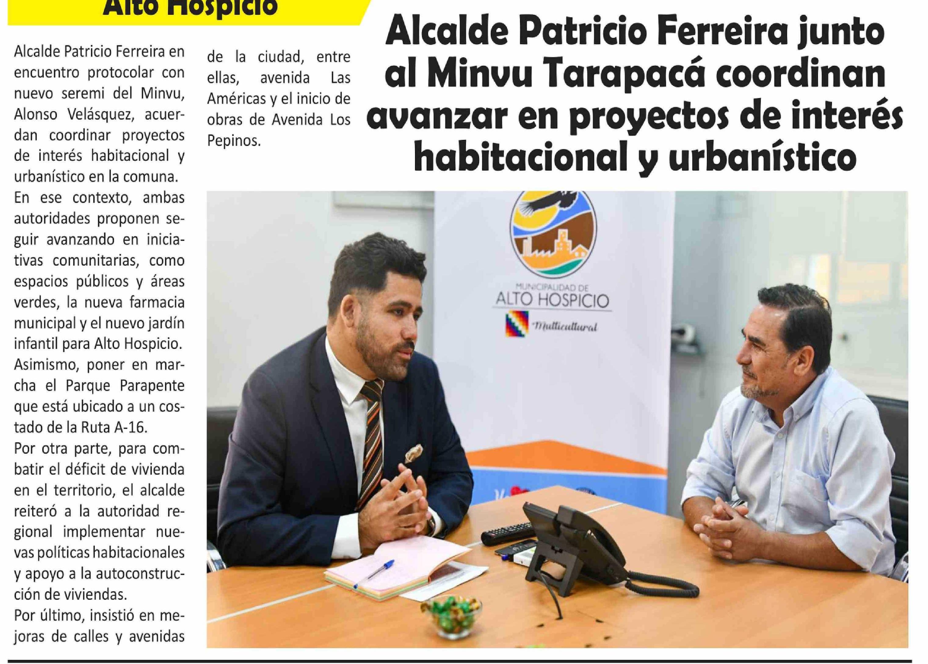 Alcalde Patricio Ferreira junto al Minvu Tarapacá coordinan avanzar en proyectos de interés habitacional y urbanístico