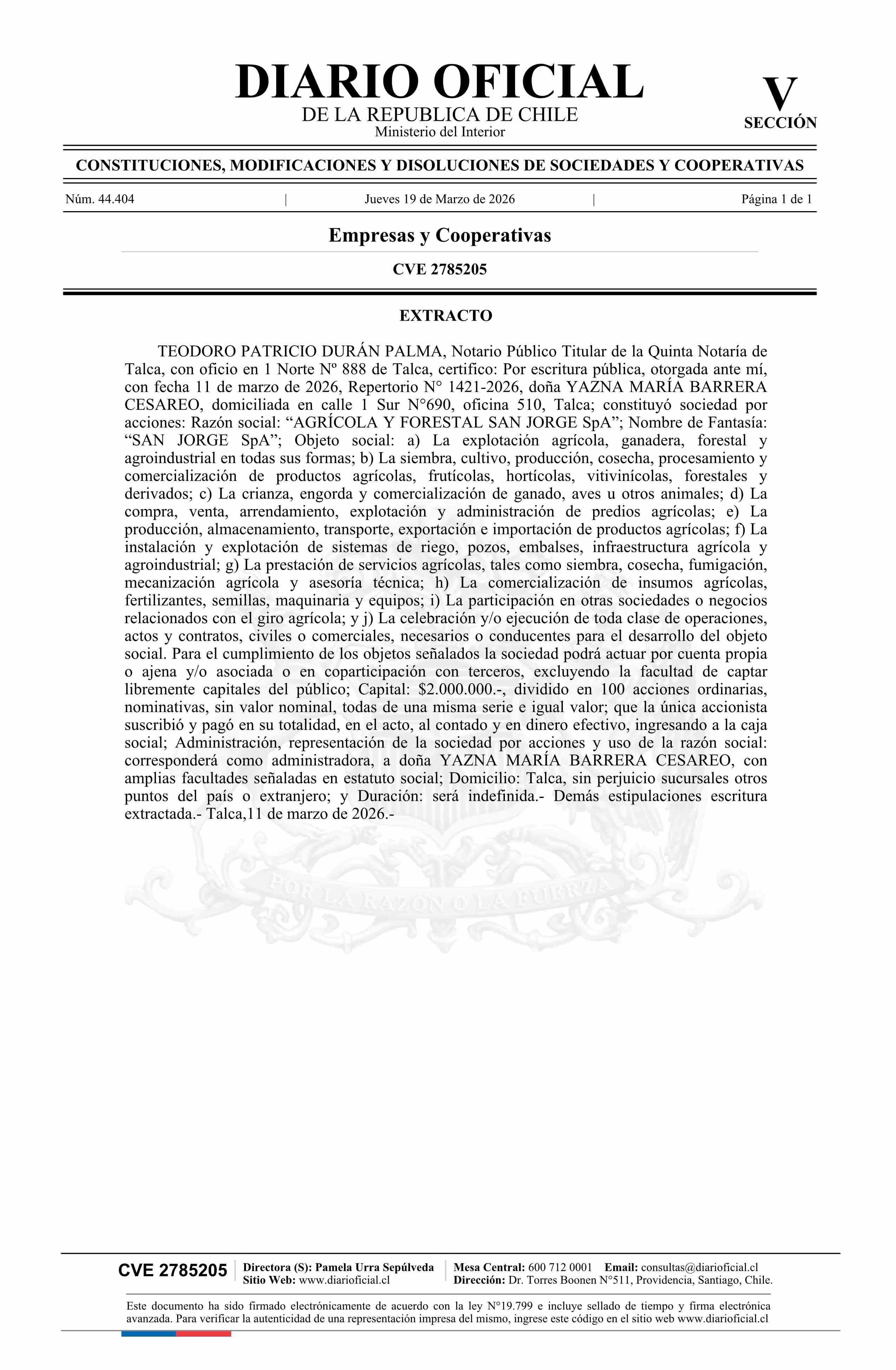 AGRÍCOLA Y FORESTAL SAN JORGE SpA