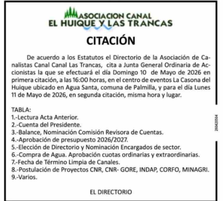 ASOCIACION CANAL EL HUIQUE Y LAS TRANCAS