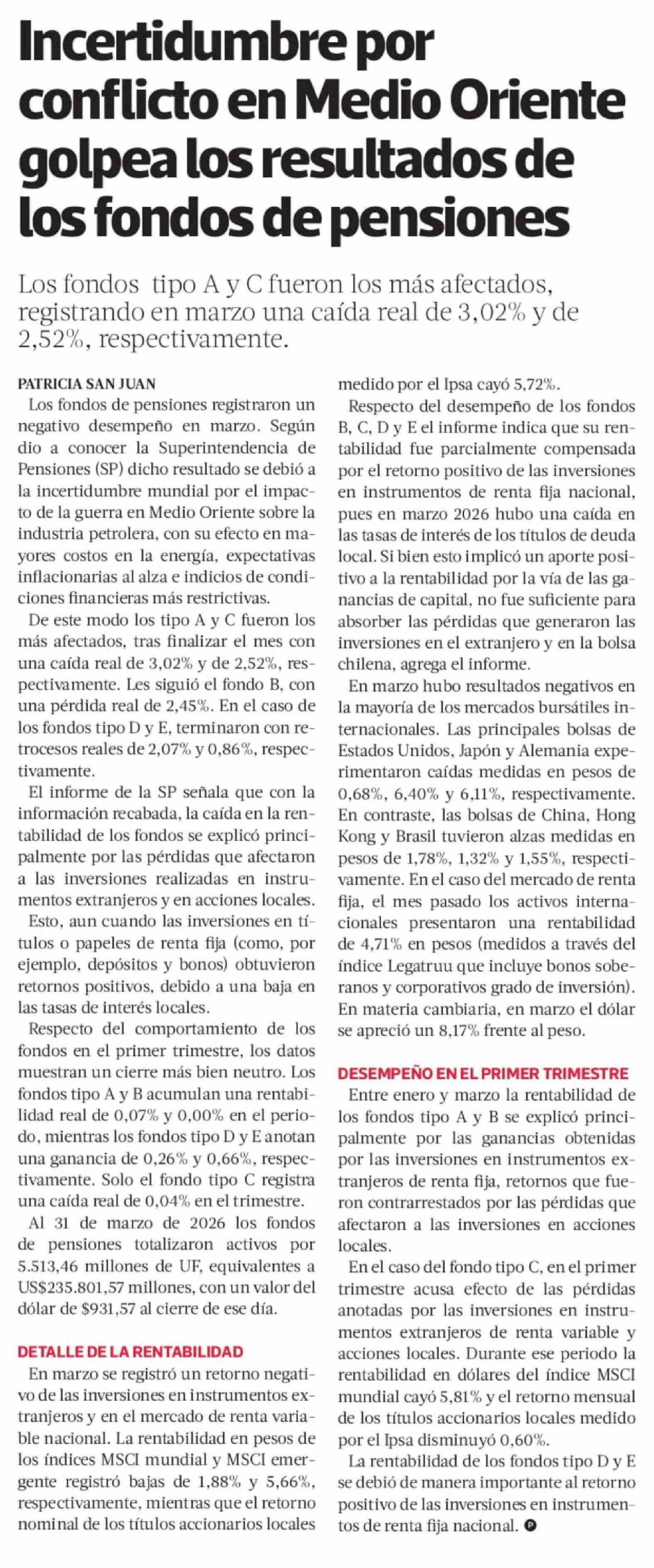 Incertidumbre por conflicto en Medio Oriente golpea los resultados de los fondos de pensiones