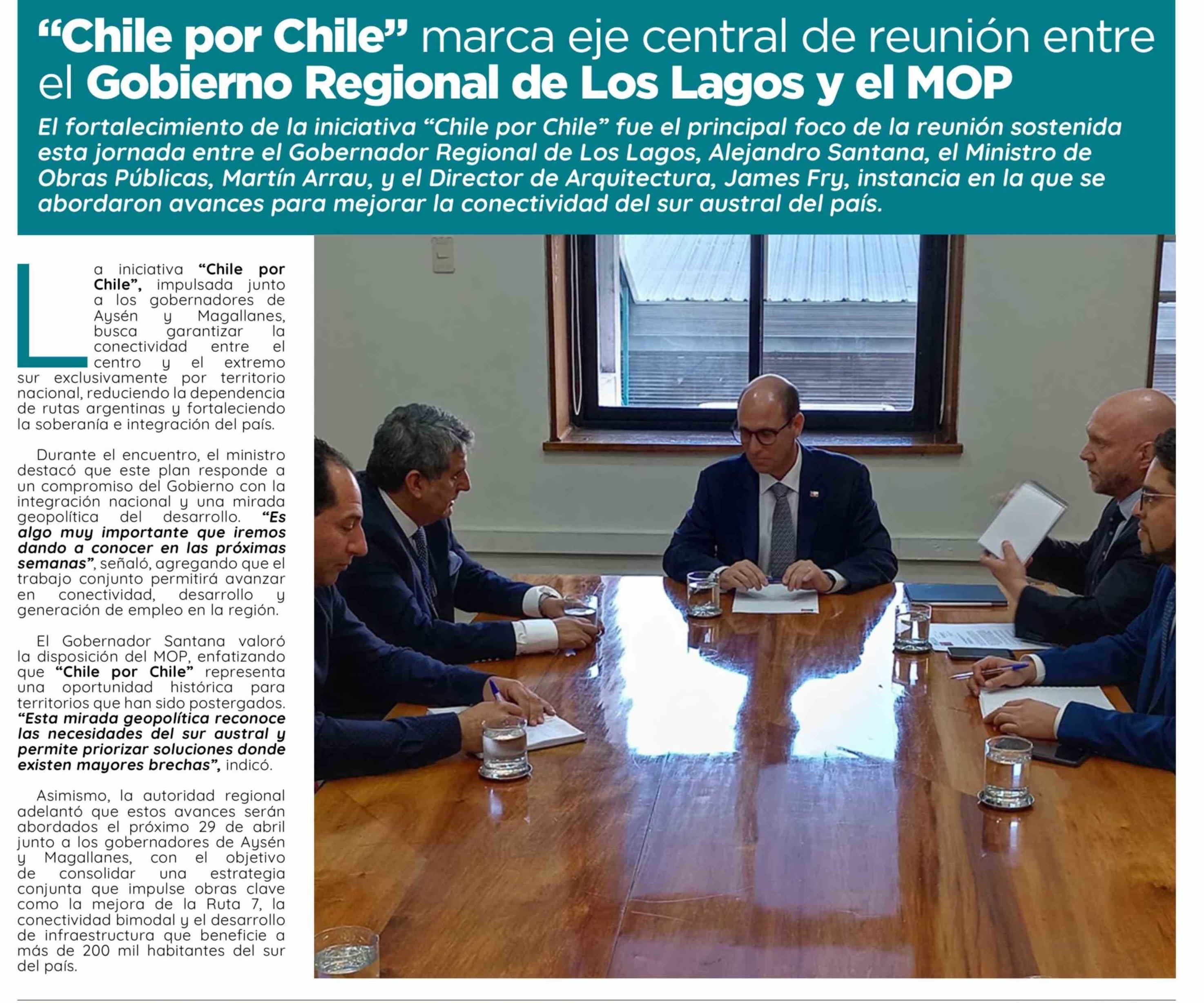 "Chile por Chile" marca eje central de reunión entre el Gobierno Regional de Los Lagos y el MOP
