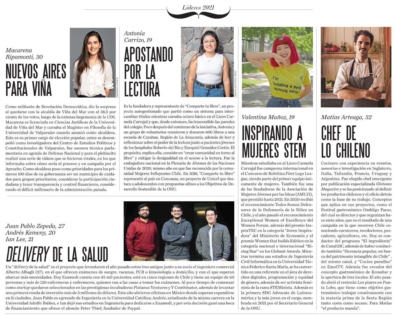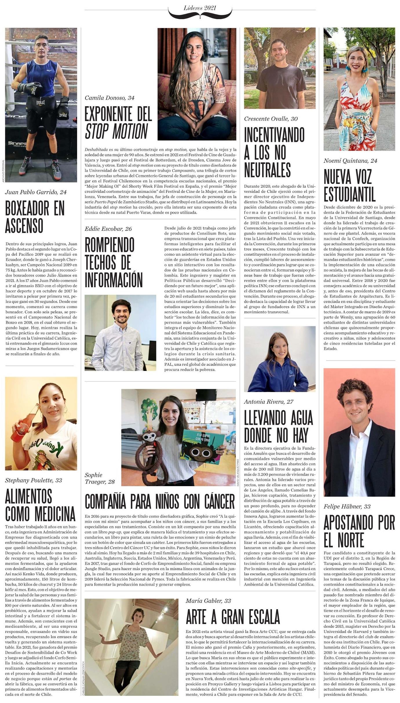 LIDERES 2021 100 JÓVENES LÍDERES REVISTA "SÁBADO" Y UNIVERSIDAD ADOLFO IBÁÑEZ