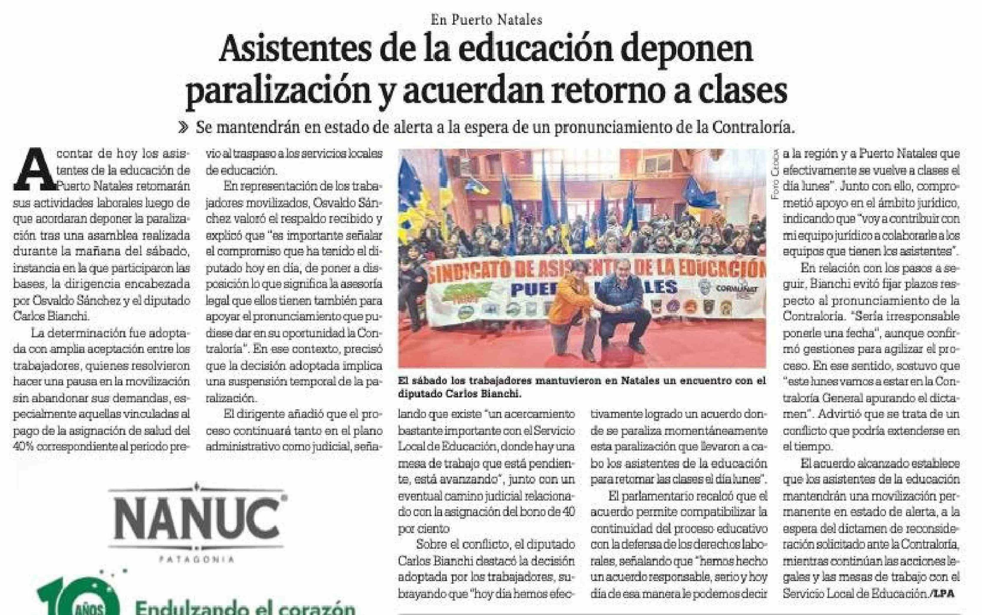 Asistentes de la educación deponen paralización y acuerdan retorno a clases
