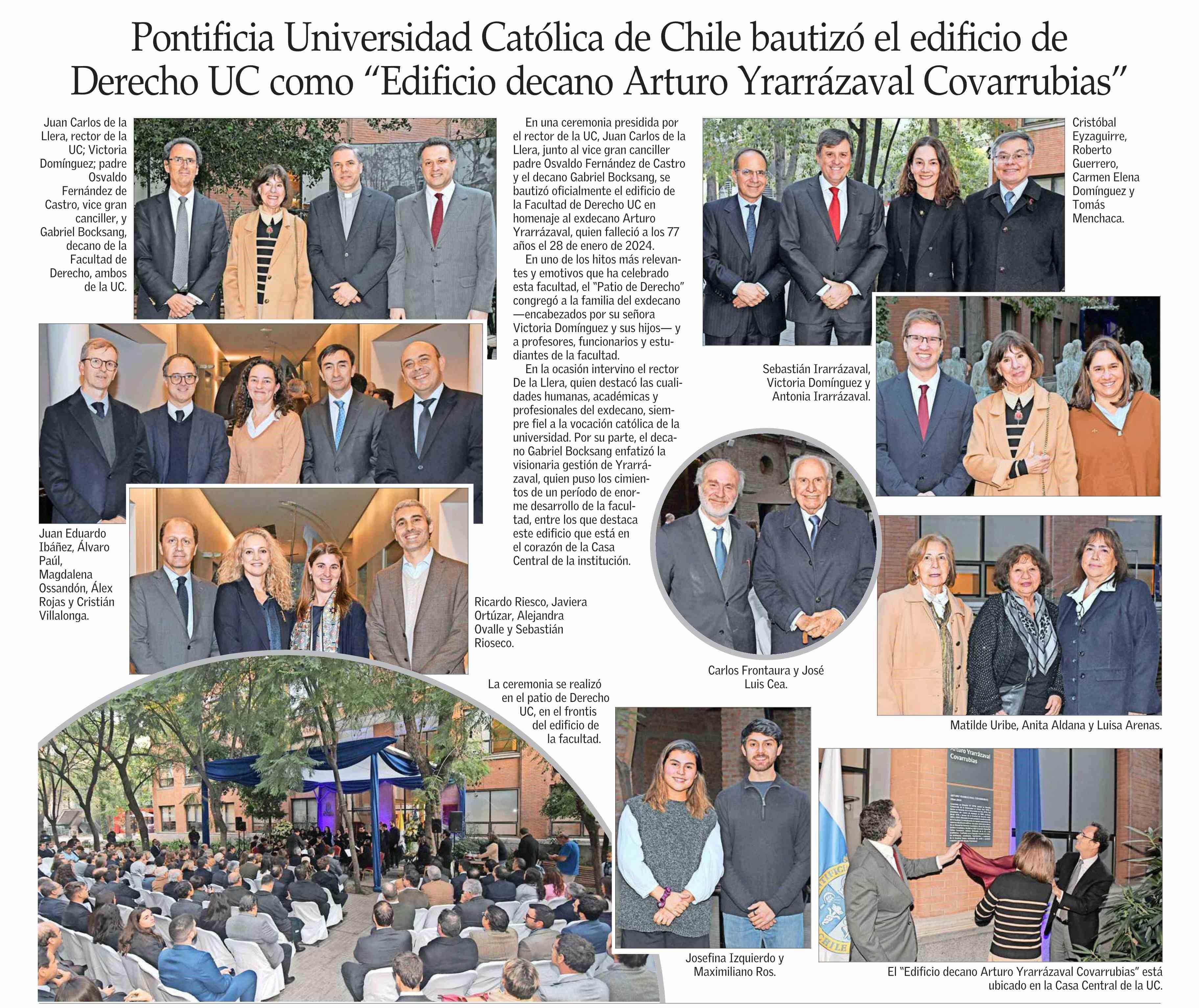 Pontificia Universidad Católica de Chile bautizó el edificio de Derecho UC como “Edificio decano Arturo Yrarrázaval Covarrubias”