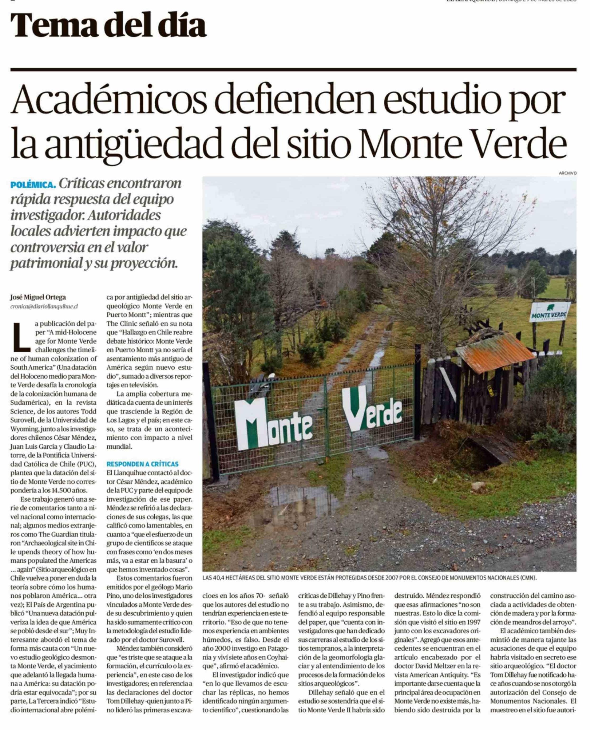 Título: Académicos defienden estudio por la antigüedad del sitio Monte Verde