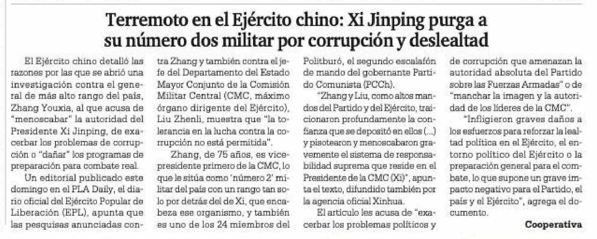 Terremoto en el Ejército chino: Xi Jinping purga a su número dos militar por corrupción y deslealtad