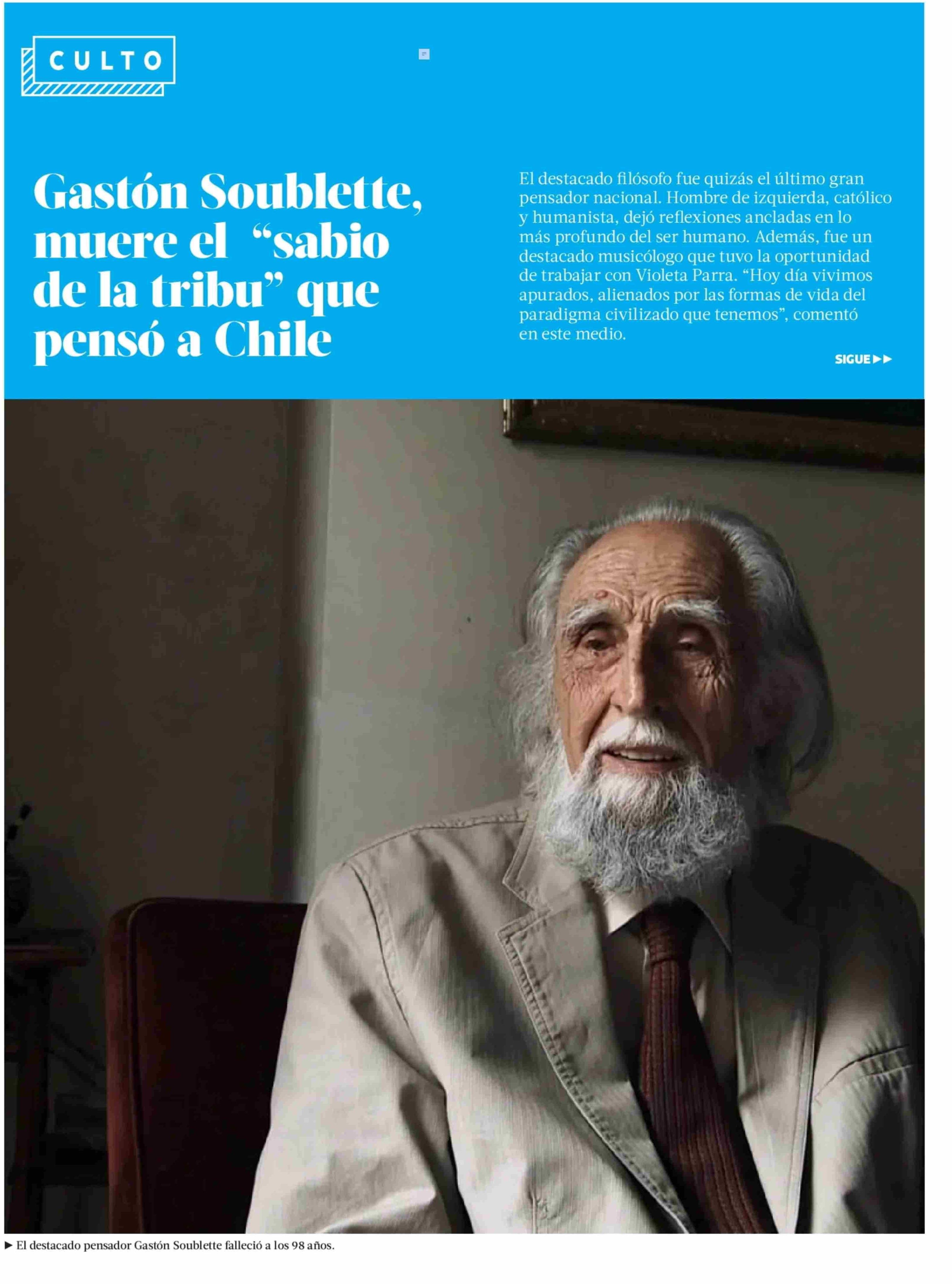 Gastón Soublette, muere el “sabio de la tribu” que penso e Chile