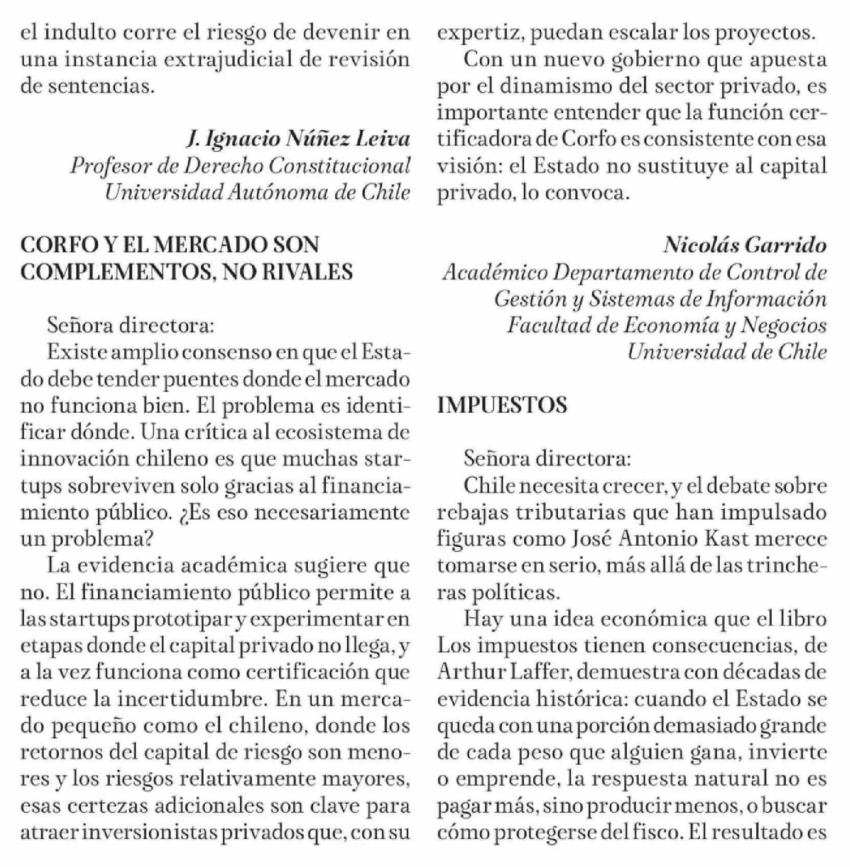 Cartas: CORFO Y EL MERCADO SON COMPLEMENTOS, NO RIVALES