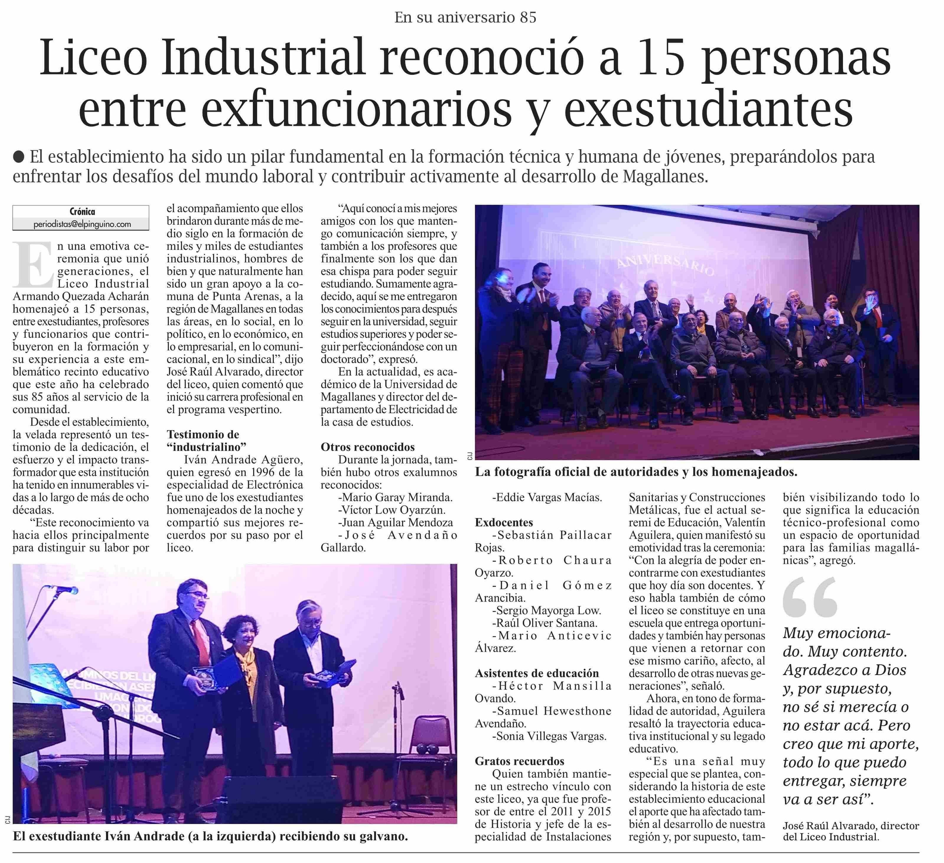 Liceo Industrial reconoció a 15 personas entre exfuncionarios y exestudiantes