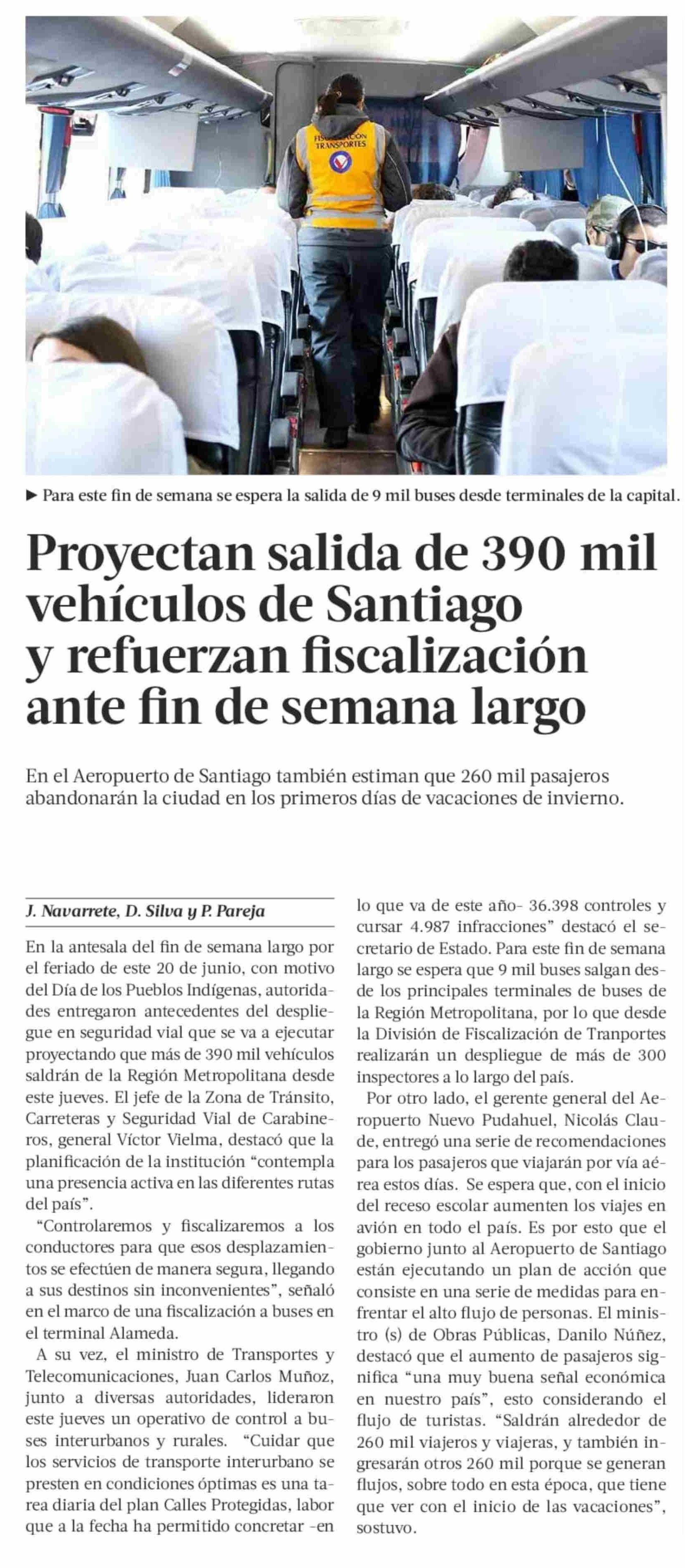 Proyectan salida de 390 mil vehículos de Santiago y refuerzan fiscalización ante fin de semana largo