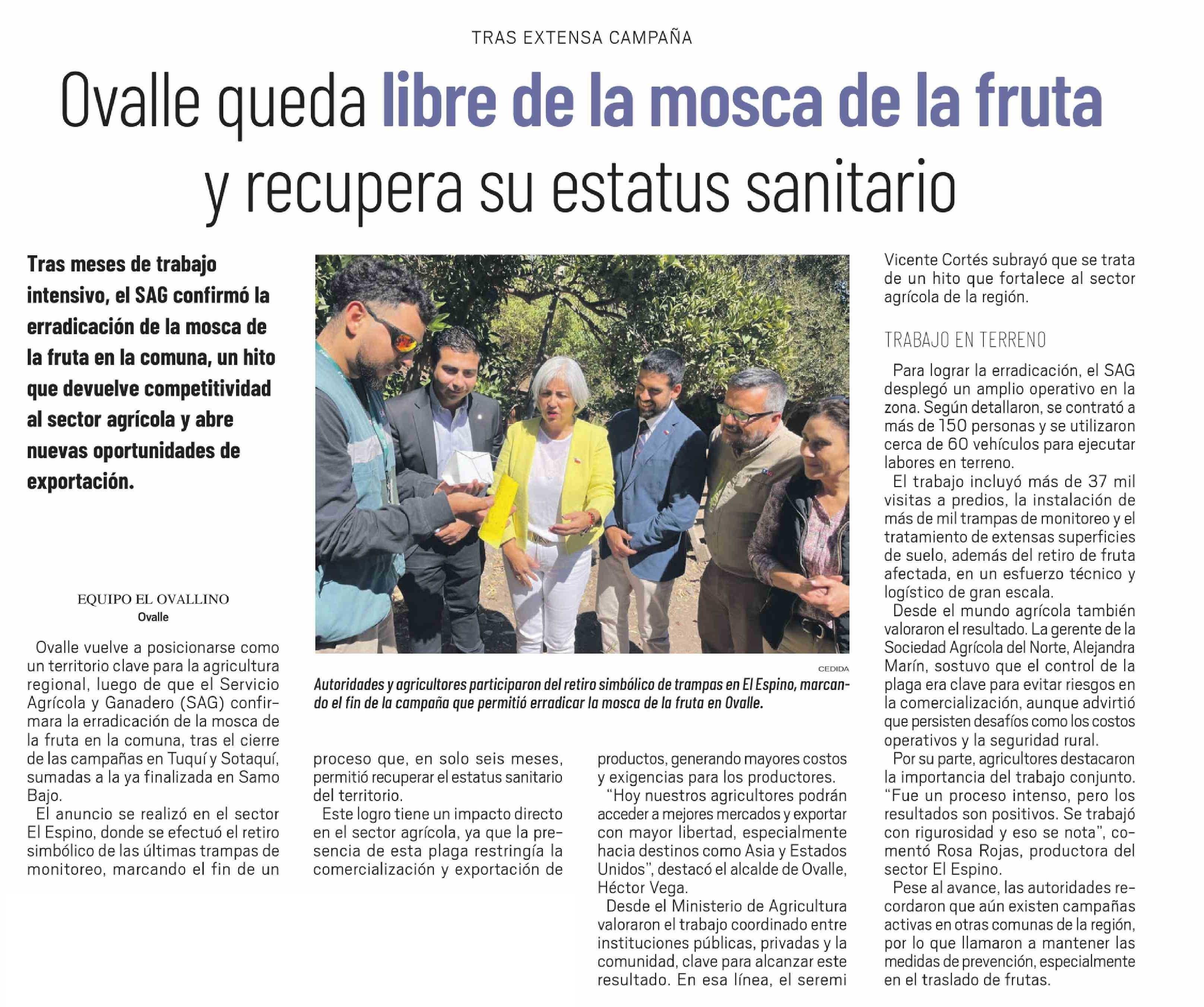 Ovalle queda libre de la mosca de la fruta y recupera su estatus sanitario