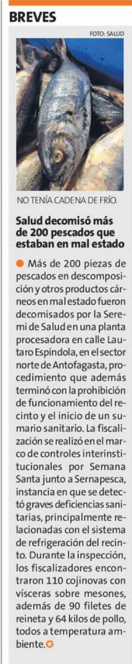Salud decomisó más de 200 pescados que estaban en mal estado