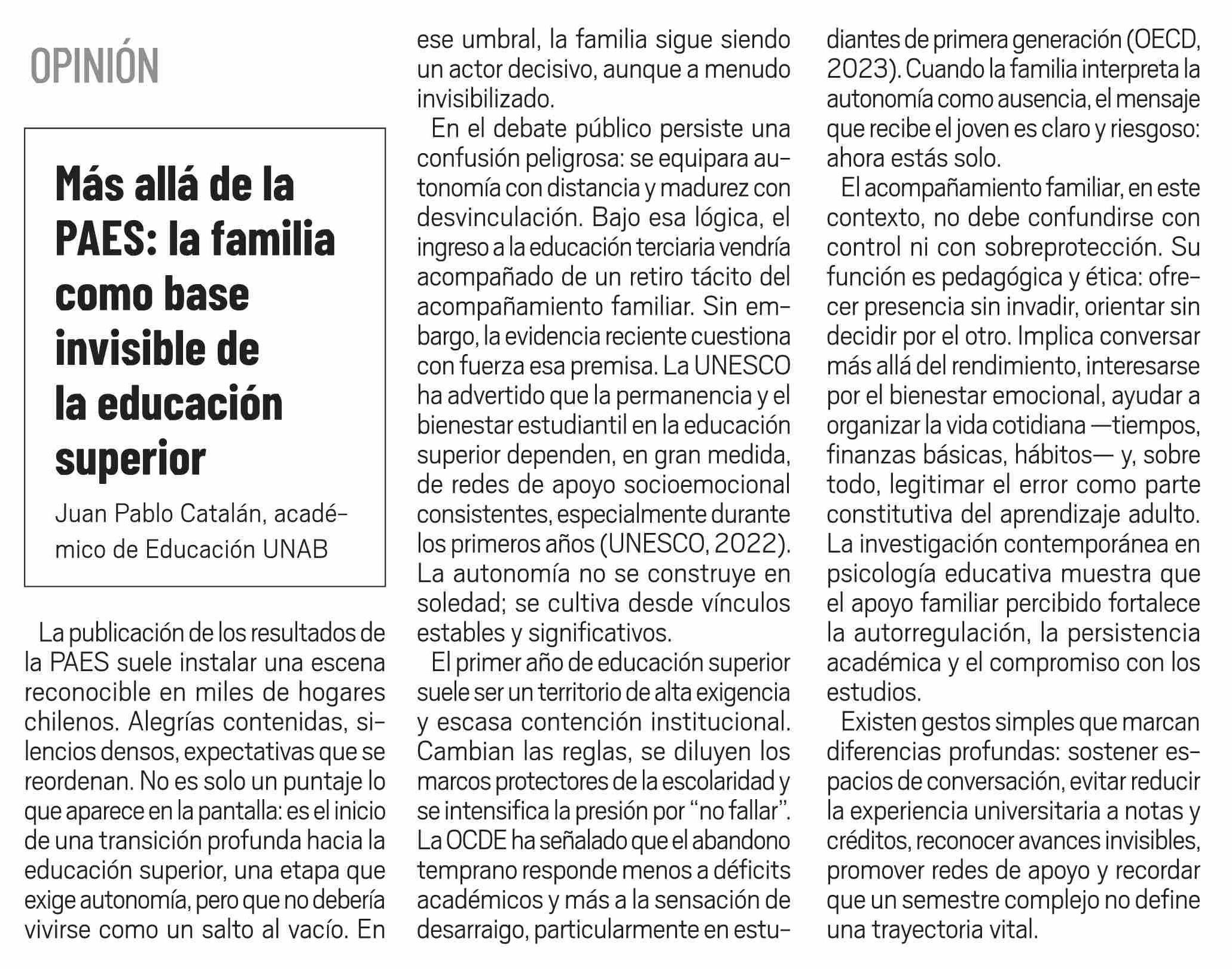 Columnas de Opinión: Más allá de la PAES: la familia como base invisible de la educación superior
