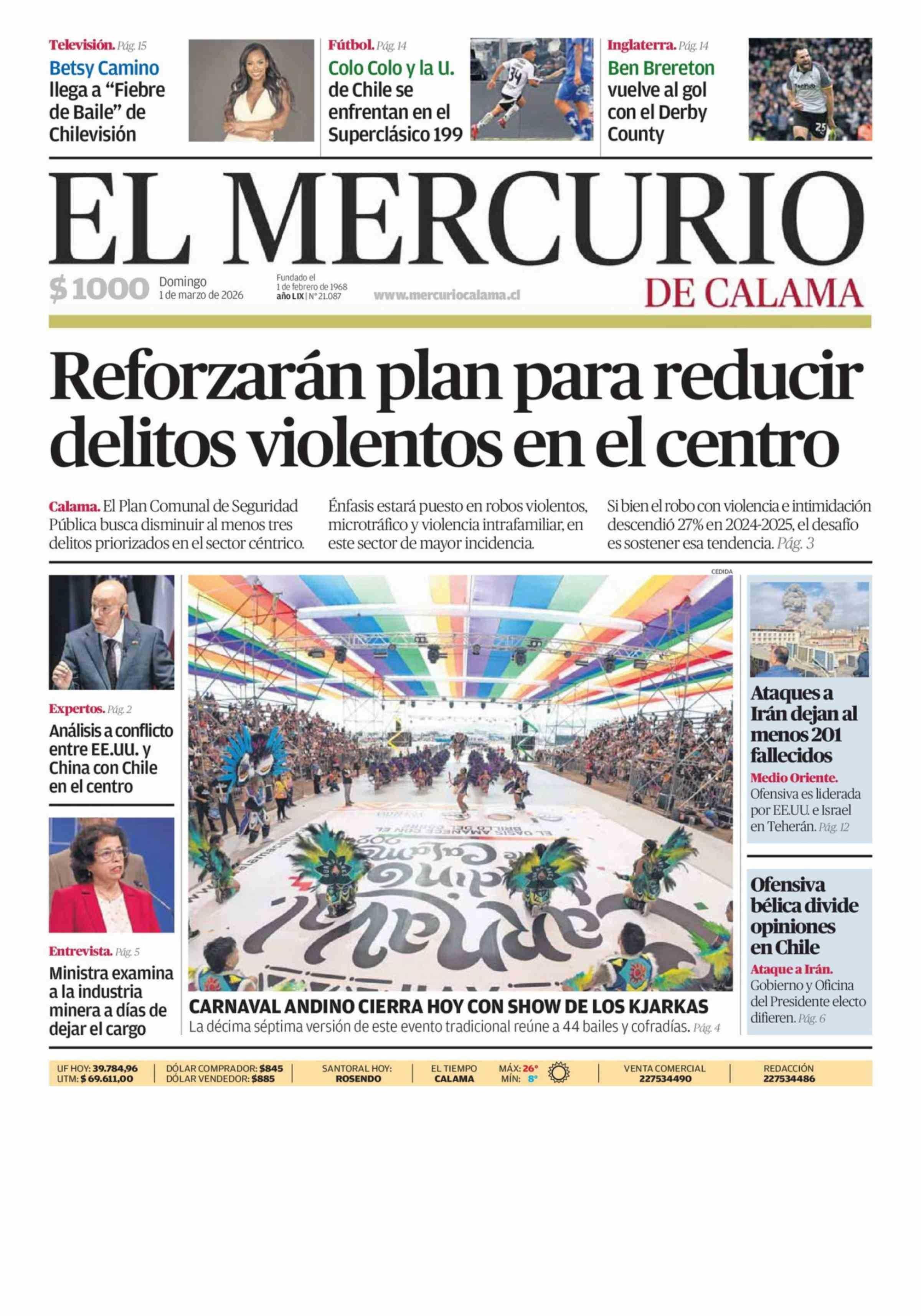 PORTADA EL MERCURIO DE CALAMA CHILE