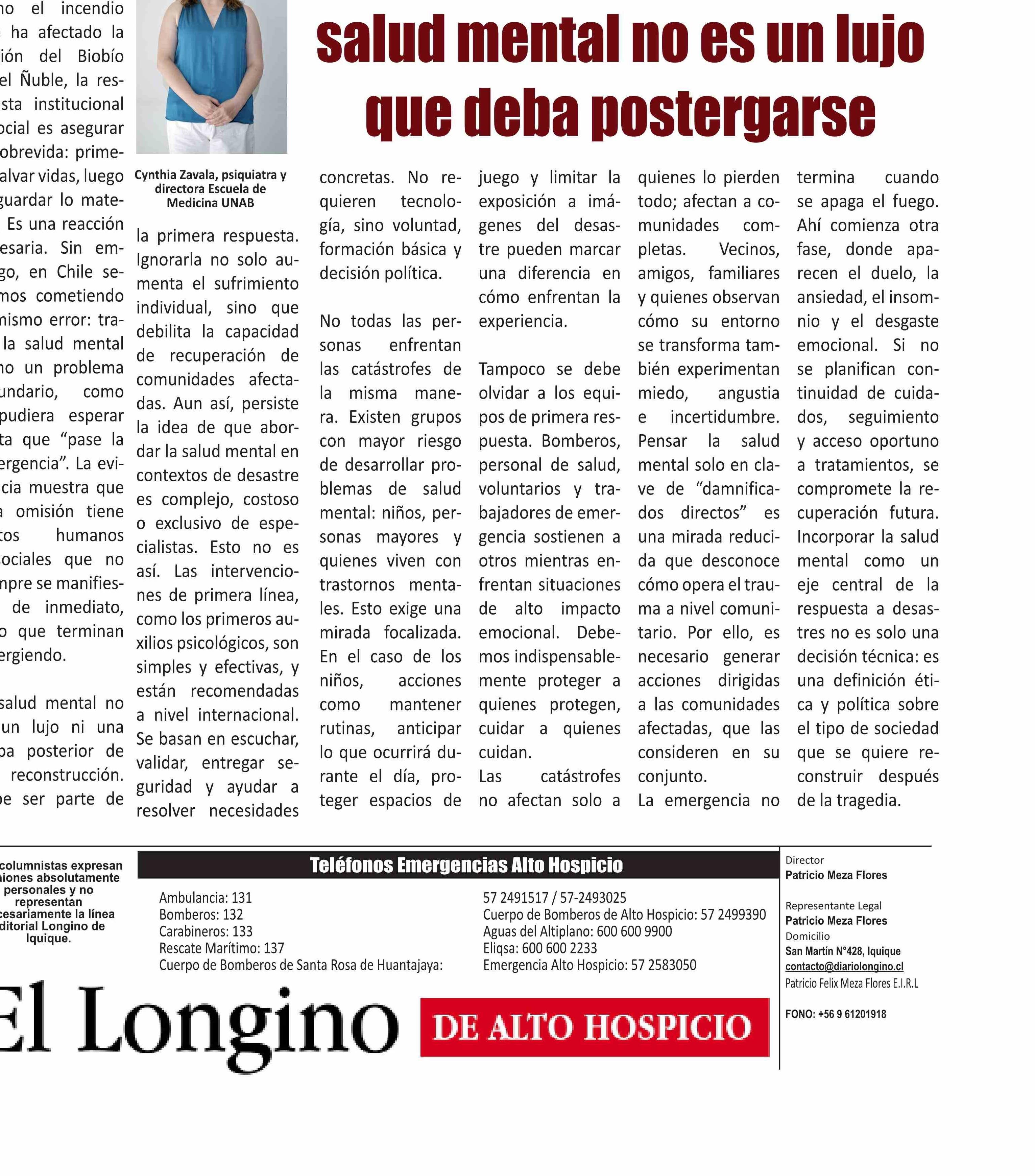 Columnas de Opinión: Ante una catástrofe, la salud mental no es un lujo que deba postergarse