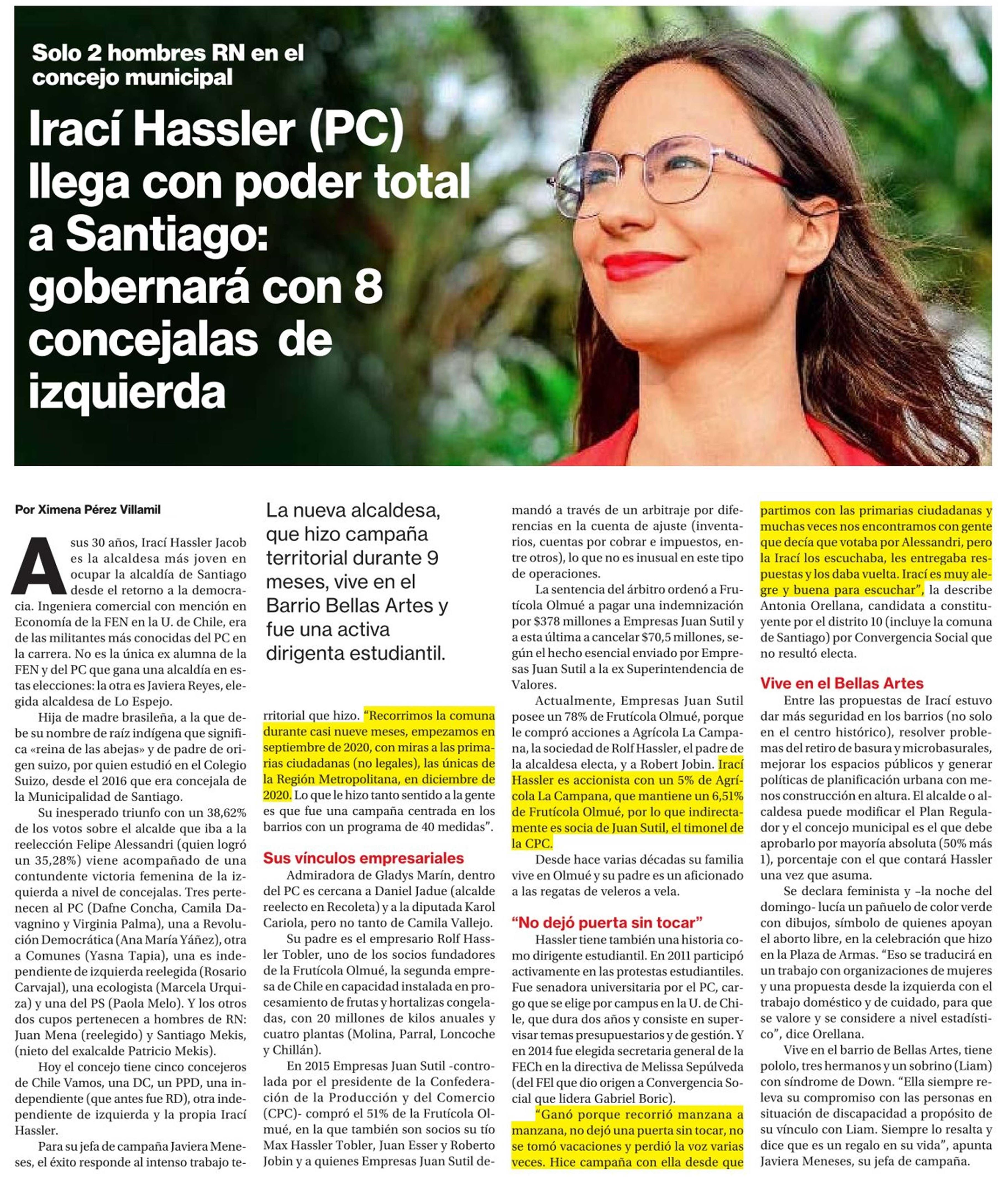Irací Hassler (PC) llega con poder total a Santiago: gobernará con 8 concejalas de izquierda