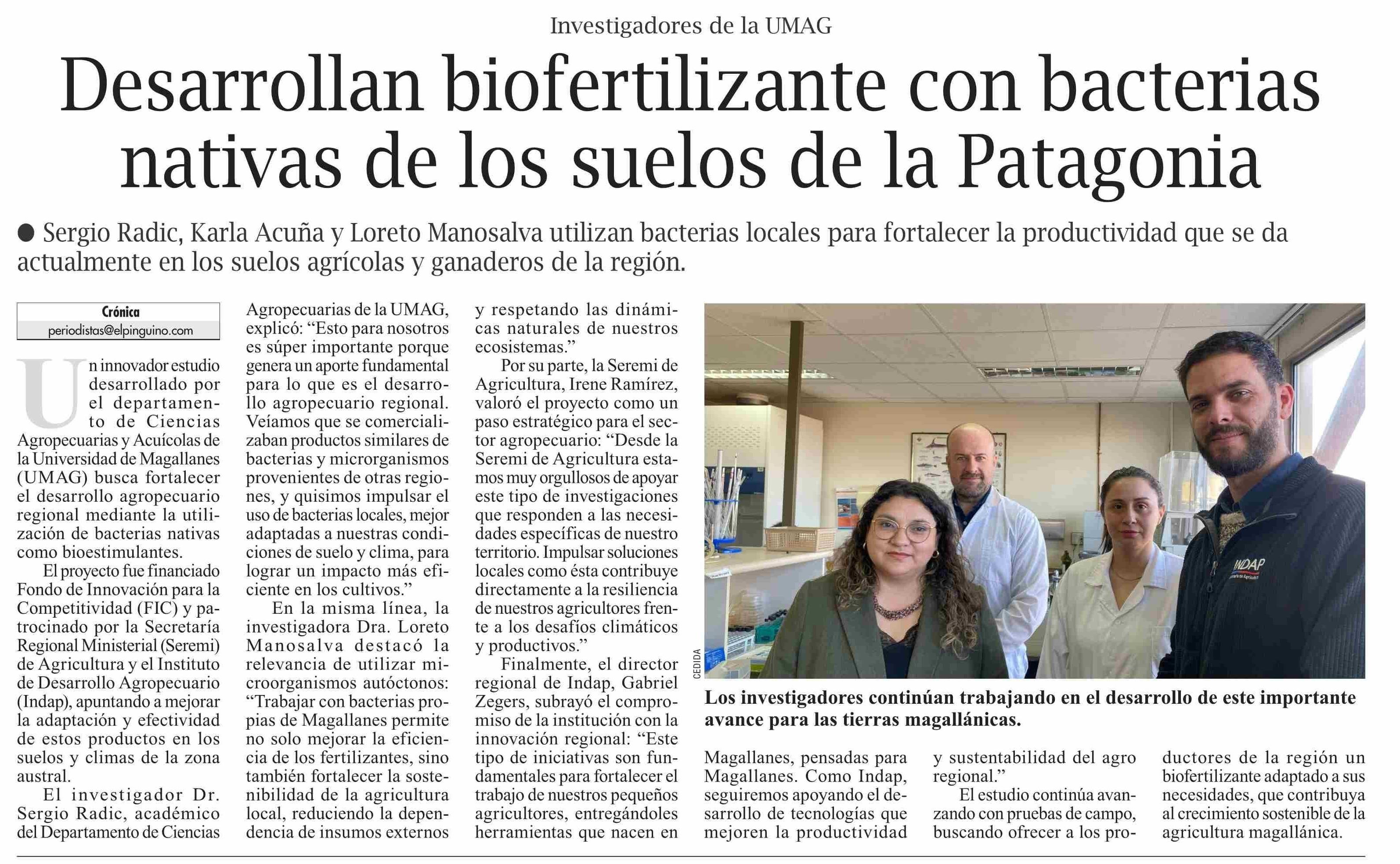 Desarrollan biofertilizante con bacterias nativas de los suelos de la Patagonia