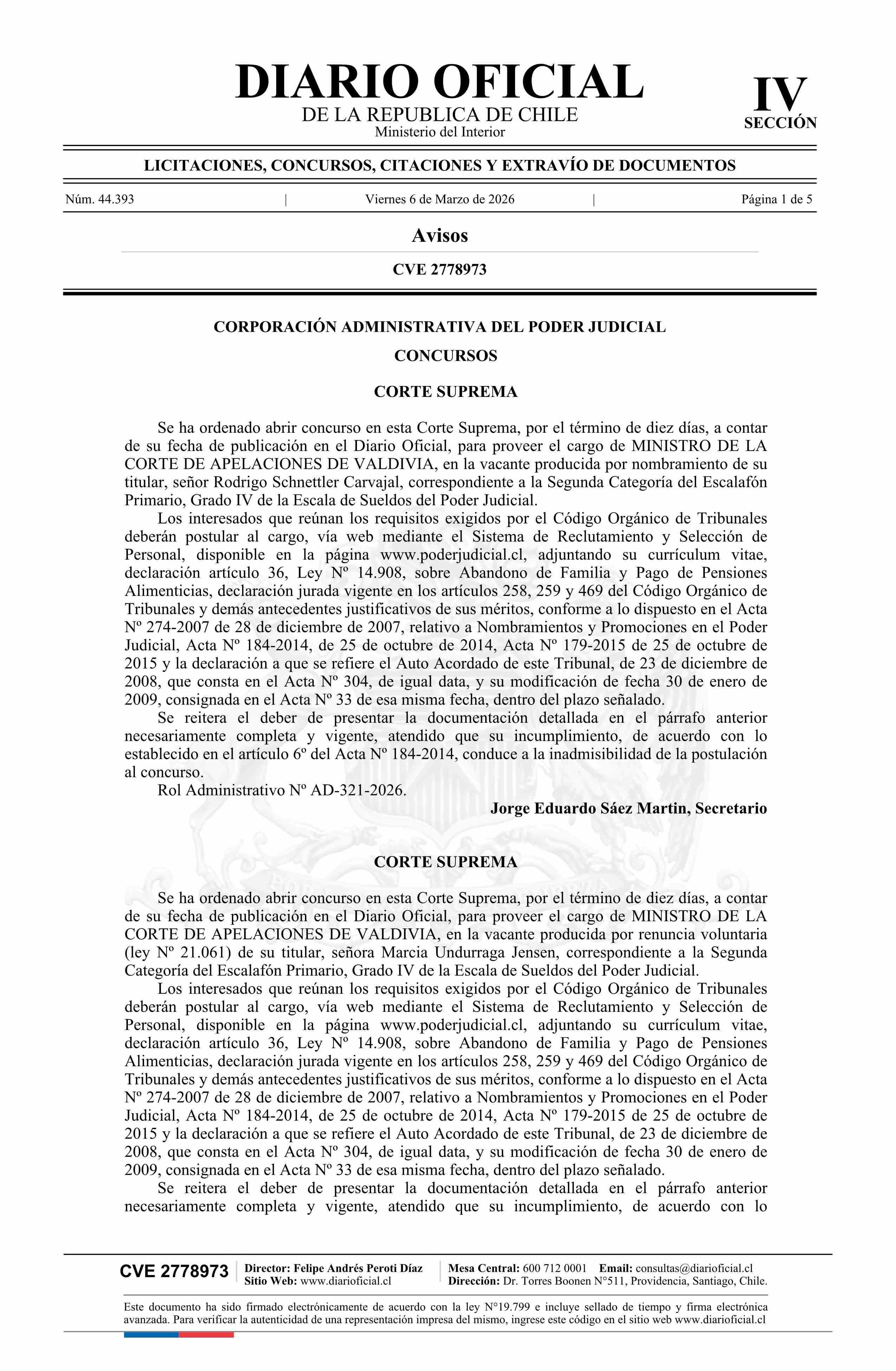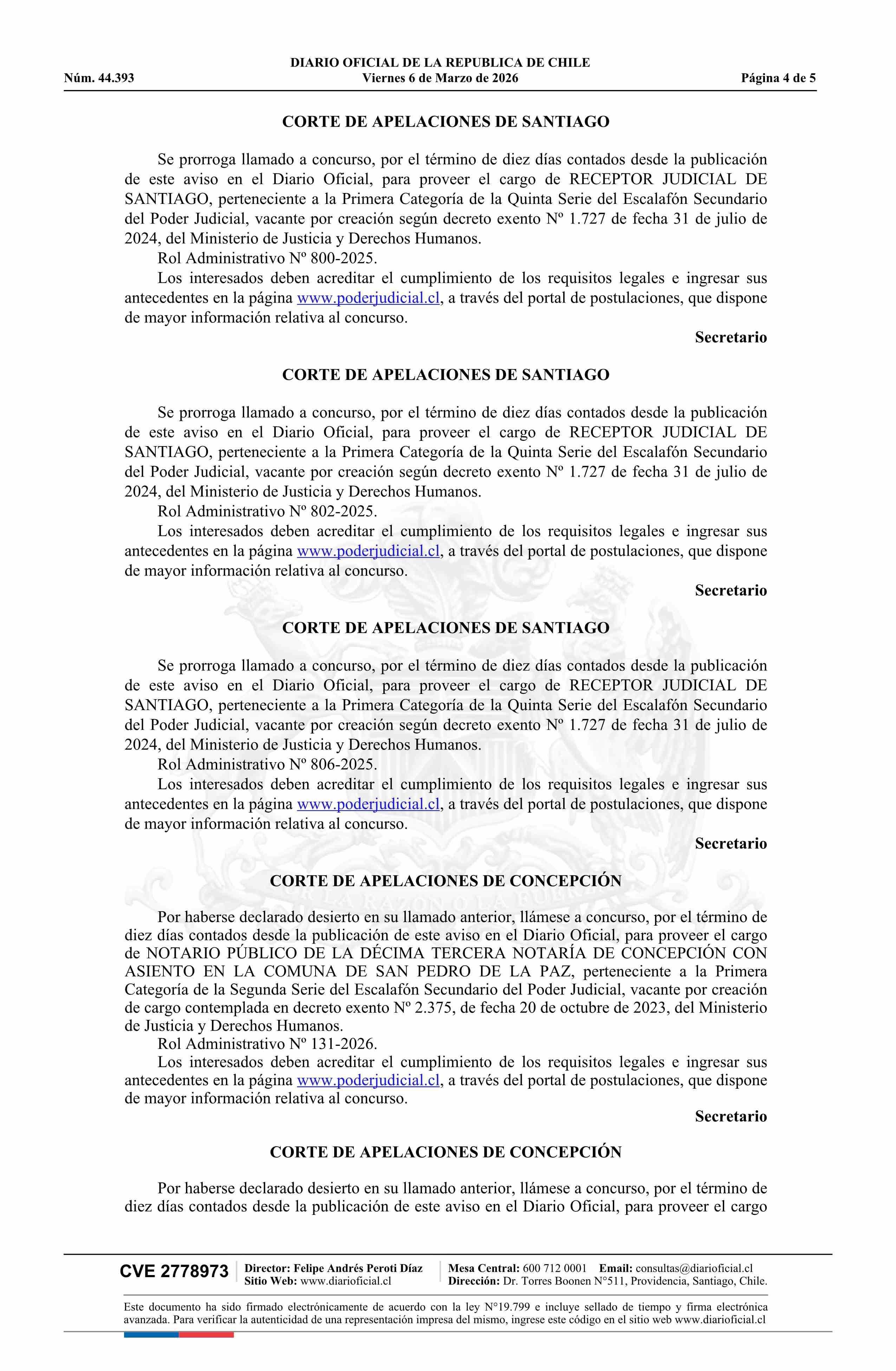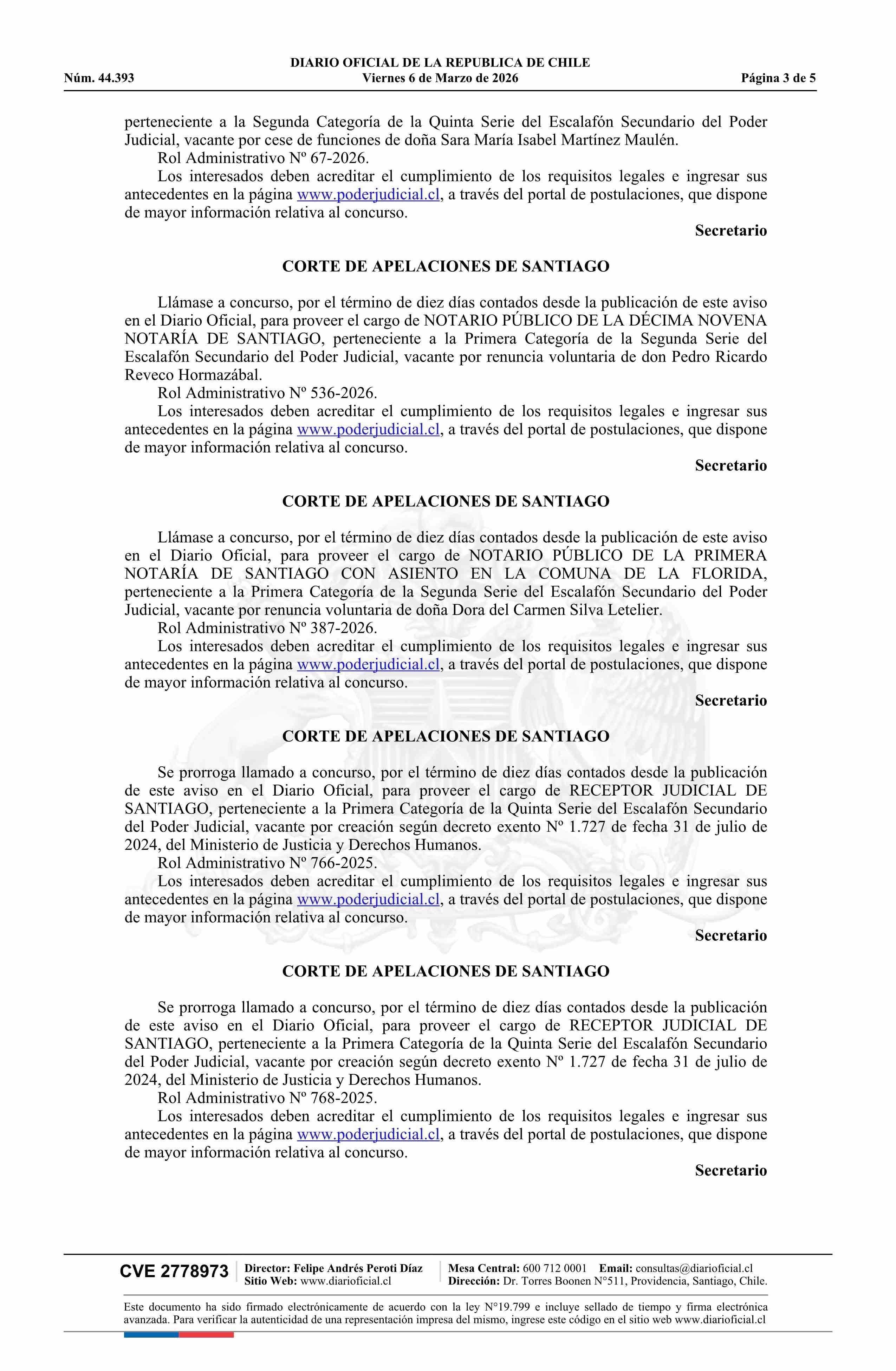Diario Oficial Edición Electrónica (Diario Oficial de Chile - 4 Avisos Destacados)