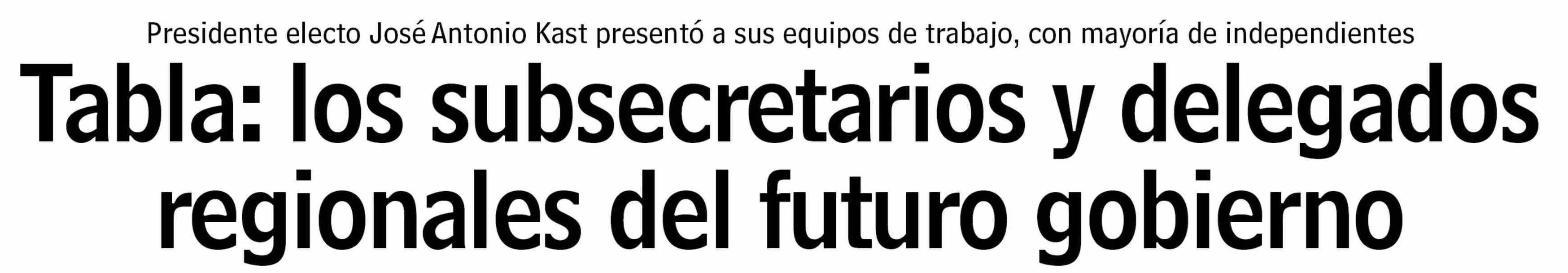 | Título: | Tabla: los subsecretarios y delegados La segunda línea de Kast: gestión, regionales del futuro gobierno coordinación y presión por resultados |