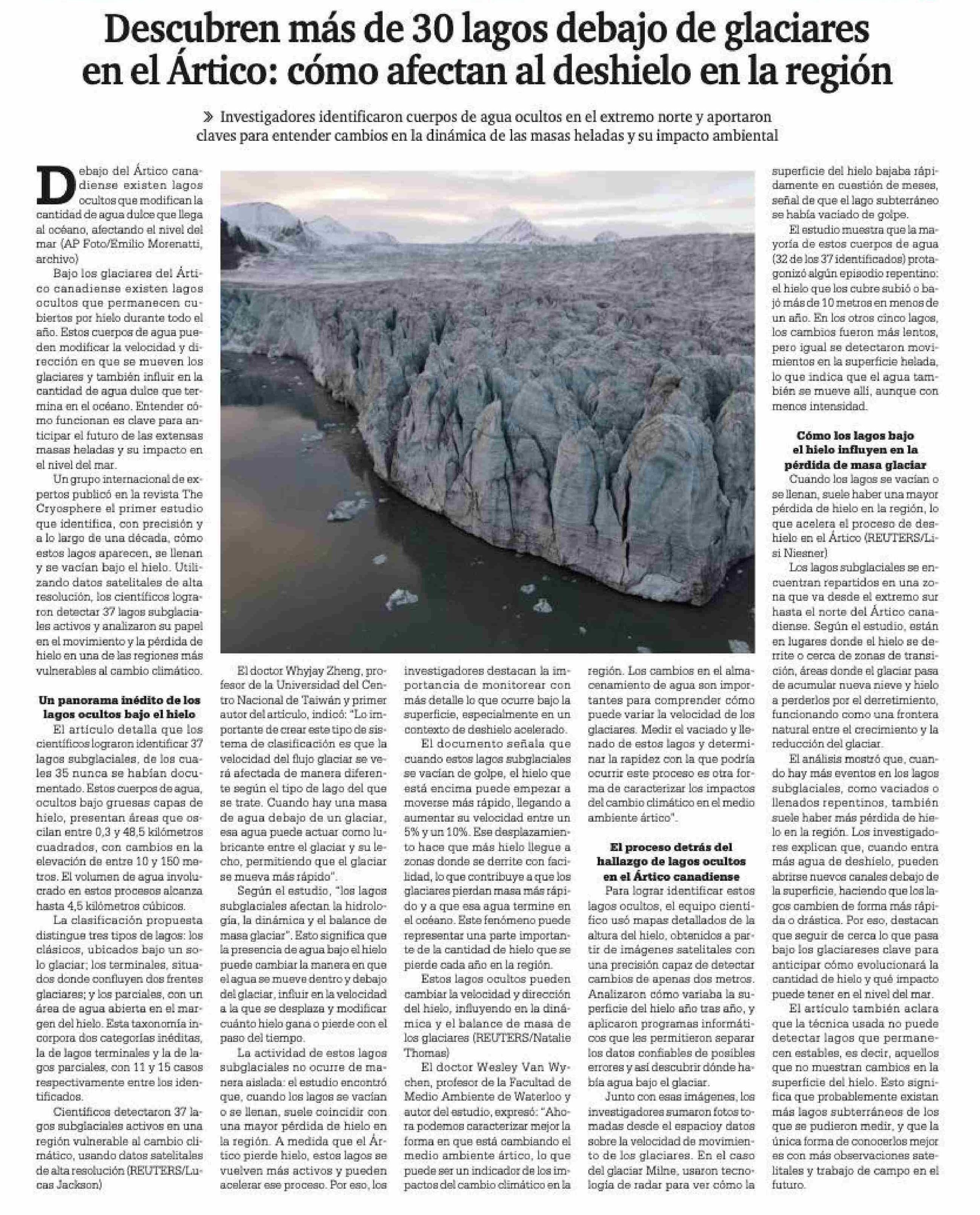 Descubren más de 30 lagos debajo de glaciares en el Ártico: cómo afectan al deshielo en la región
