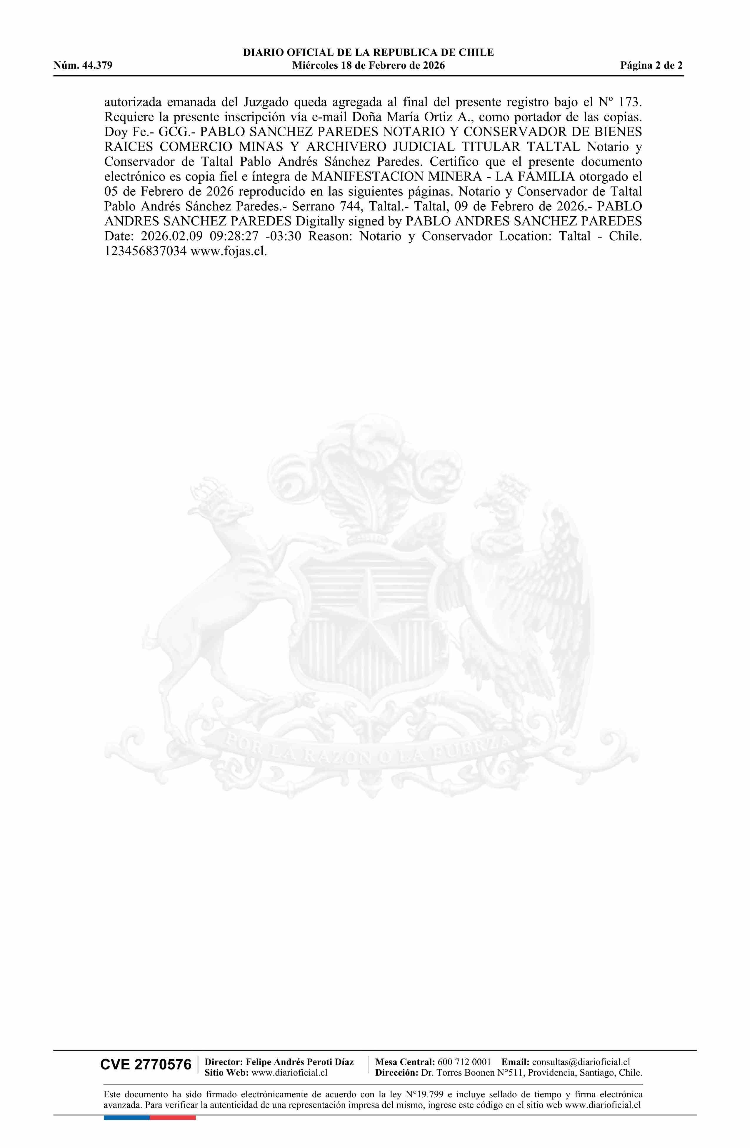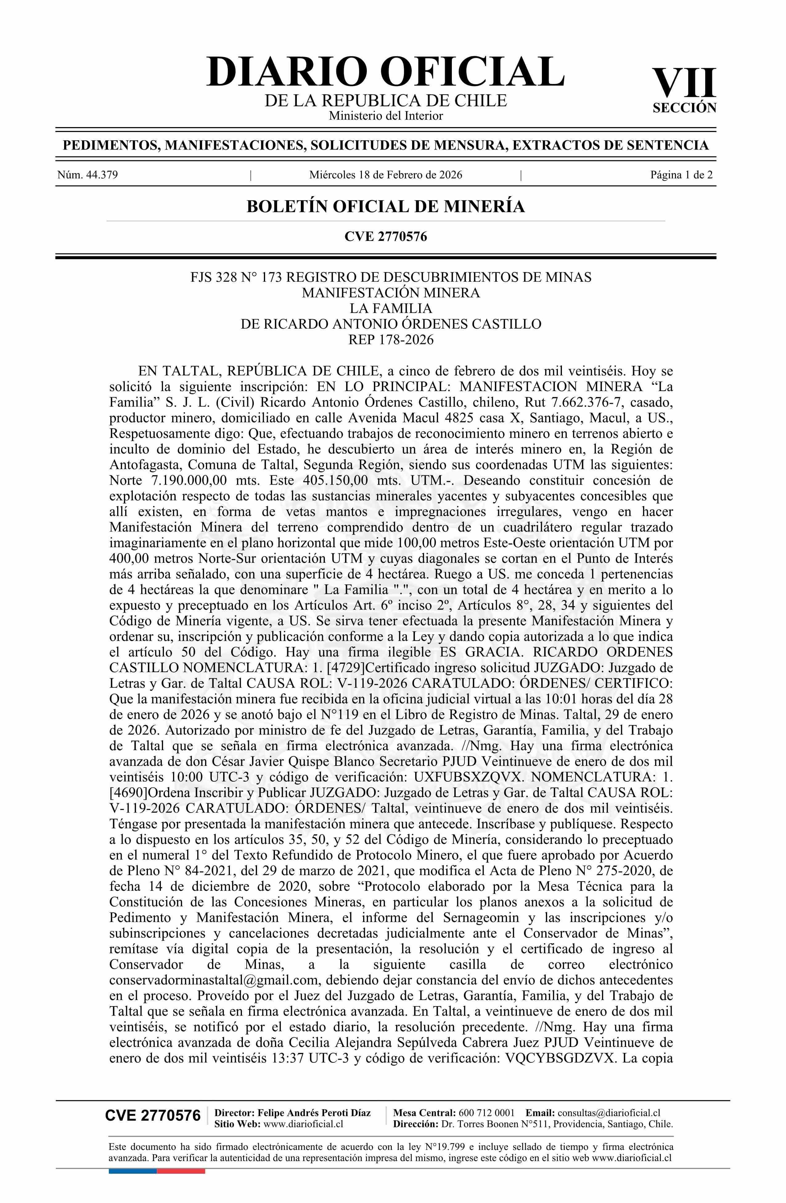 DIARIO OFICIAL CHILE - BOLETÍN OFICIAL DE MINERÍA (DIARIO OFICIAL CHILE – BOM – MANIFESTACIONES MIN)