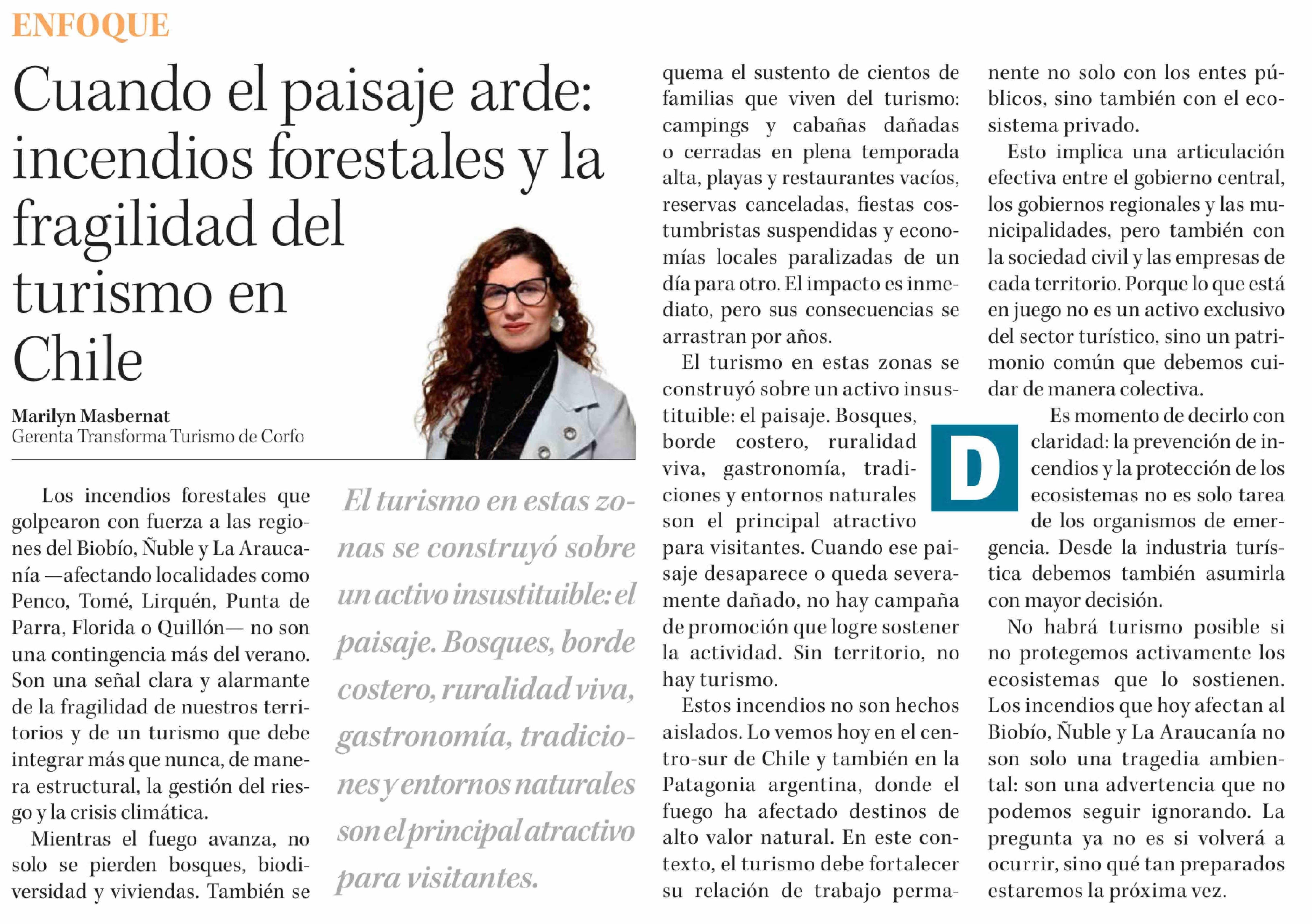 Columnas de Opinión: Cuando el paisaje arde: incendios forestales y la fragilidad del turismo en Chile