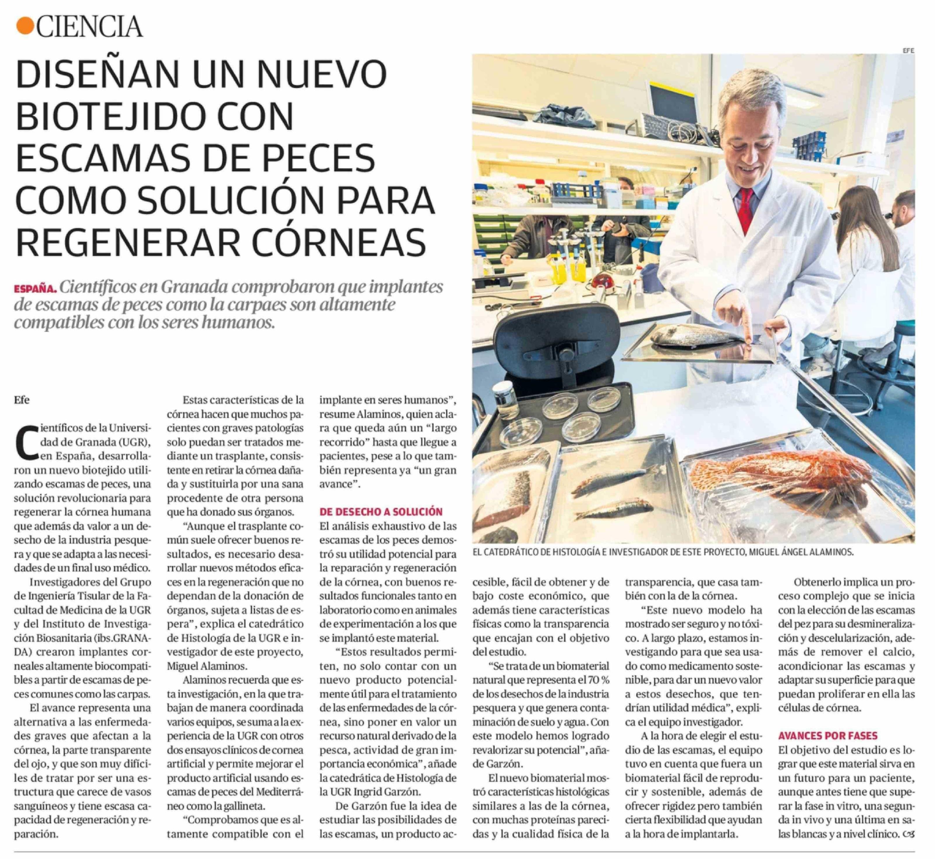 DISEÑAN UN NUEVO BIOTEJIDO CON ESCAMAS DE PECES COMO SOLUCIÓN PARA REGENERAR CÓRNEAS