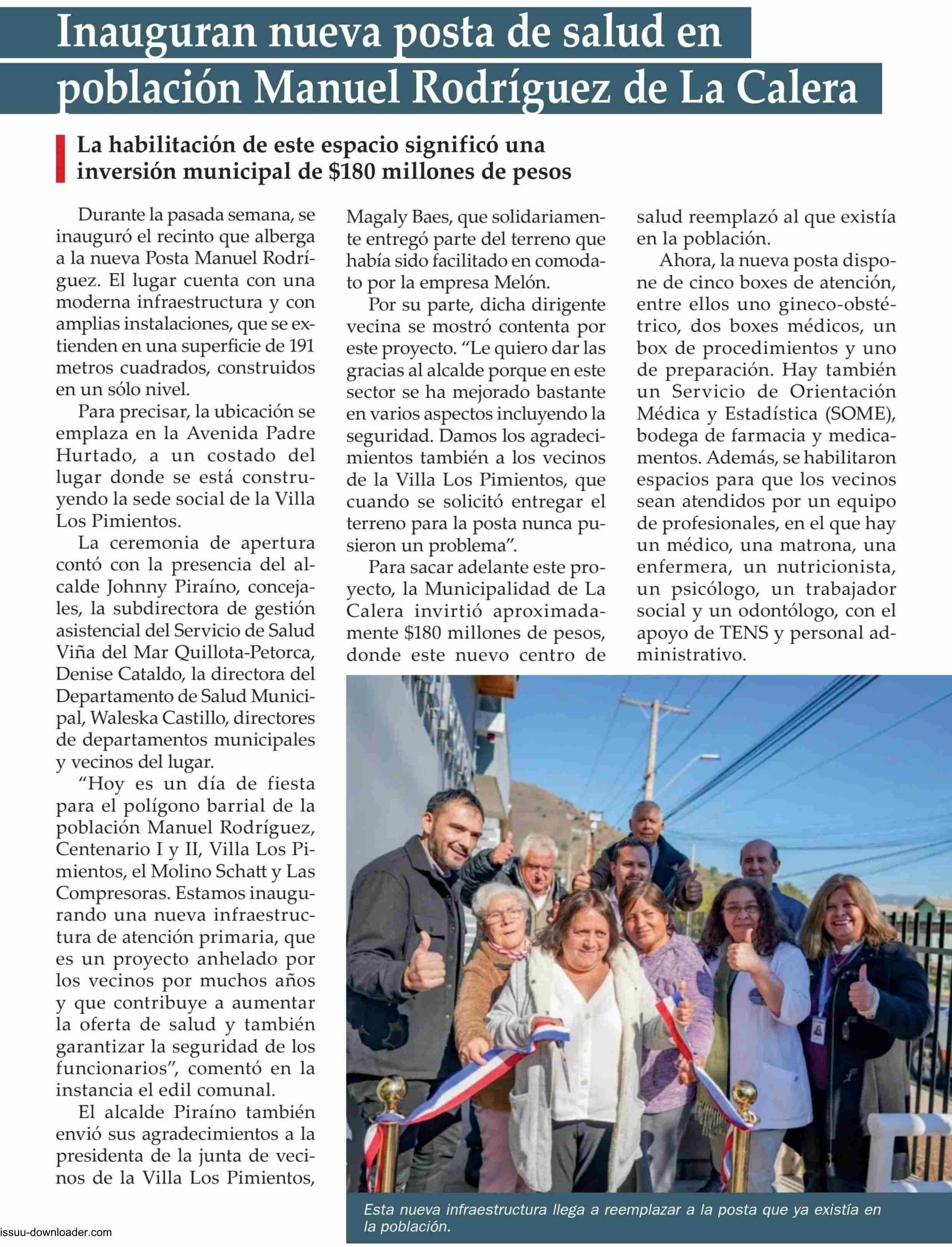 Inauguran nueva posta de salud en población Manuel Rodríguez de La Calera