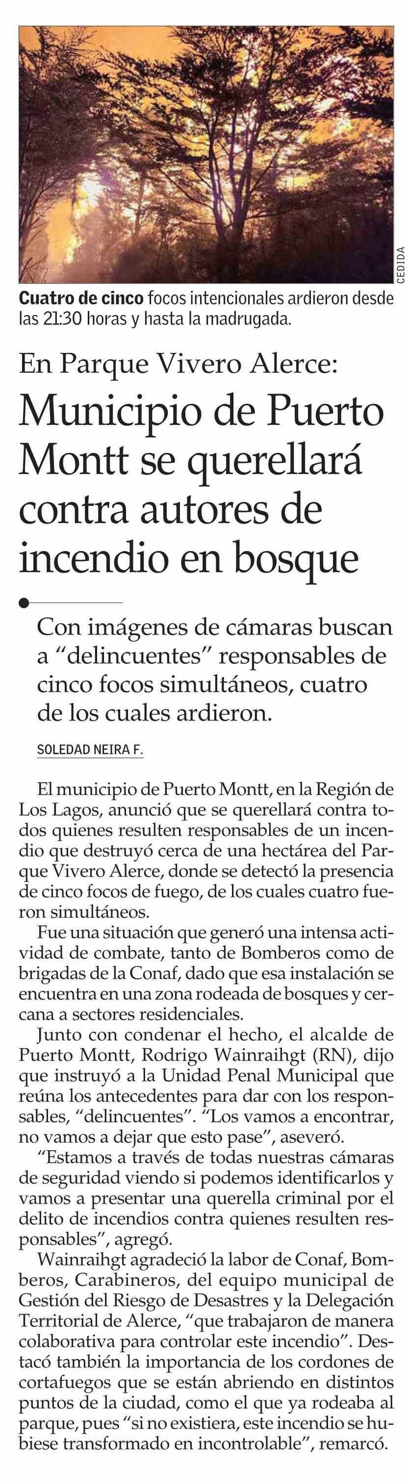 Municipio de Puerto Montt se querellará contra autores de incendio en bosque