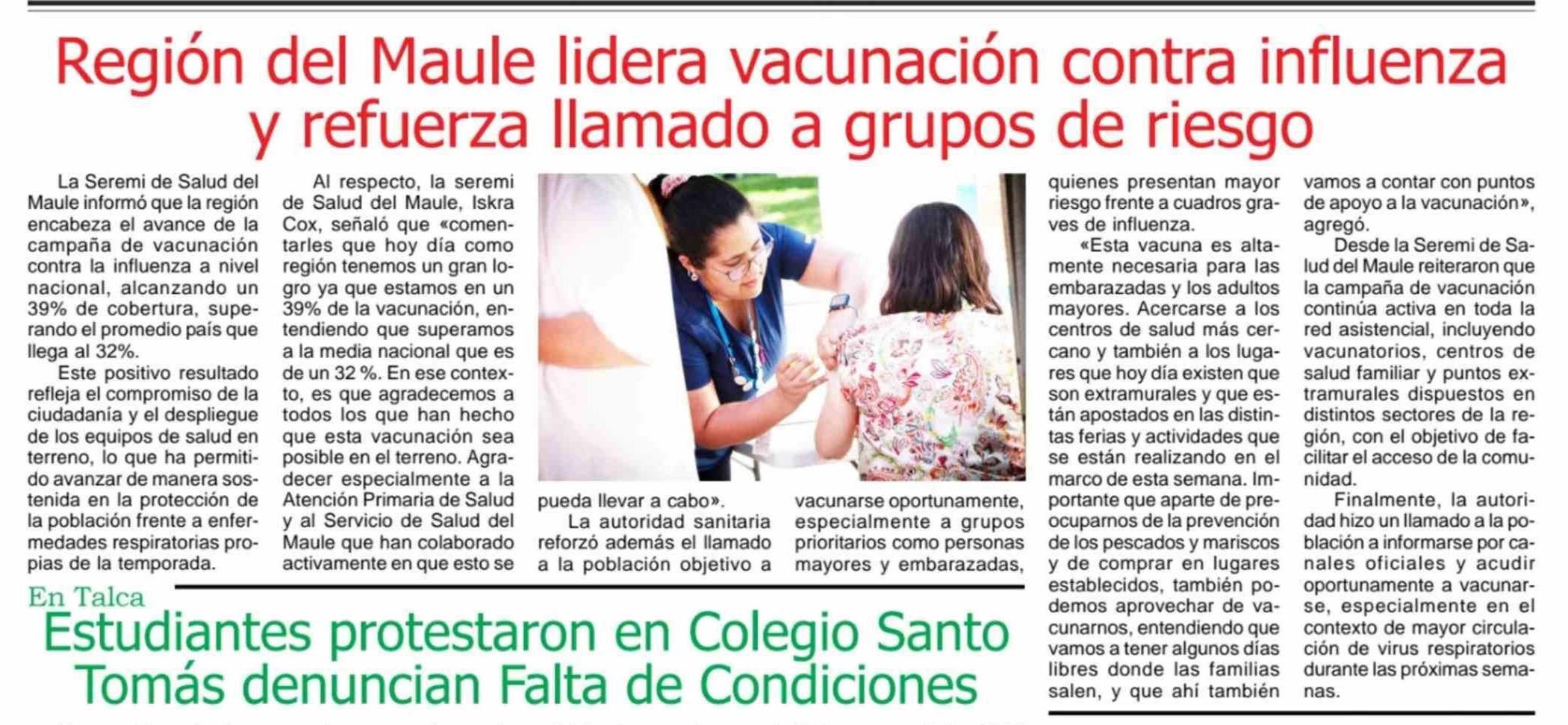 Región del Maule lidera vacunación contra influenza y refuerza llamado a grupos de riesgo