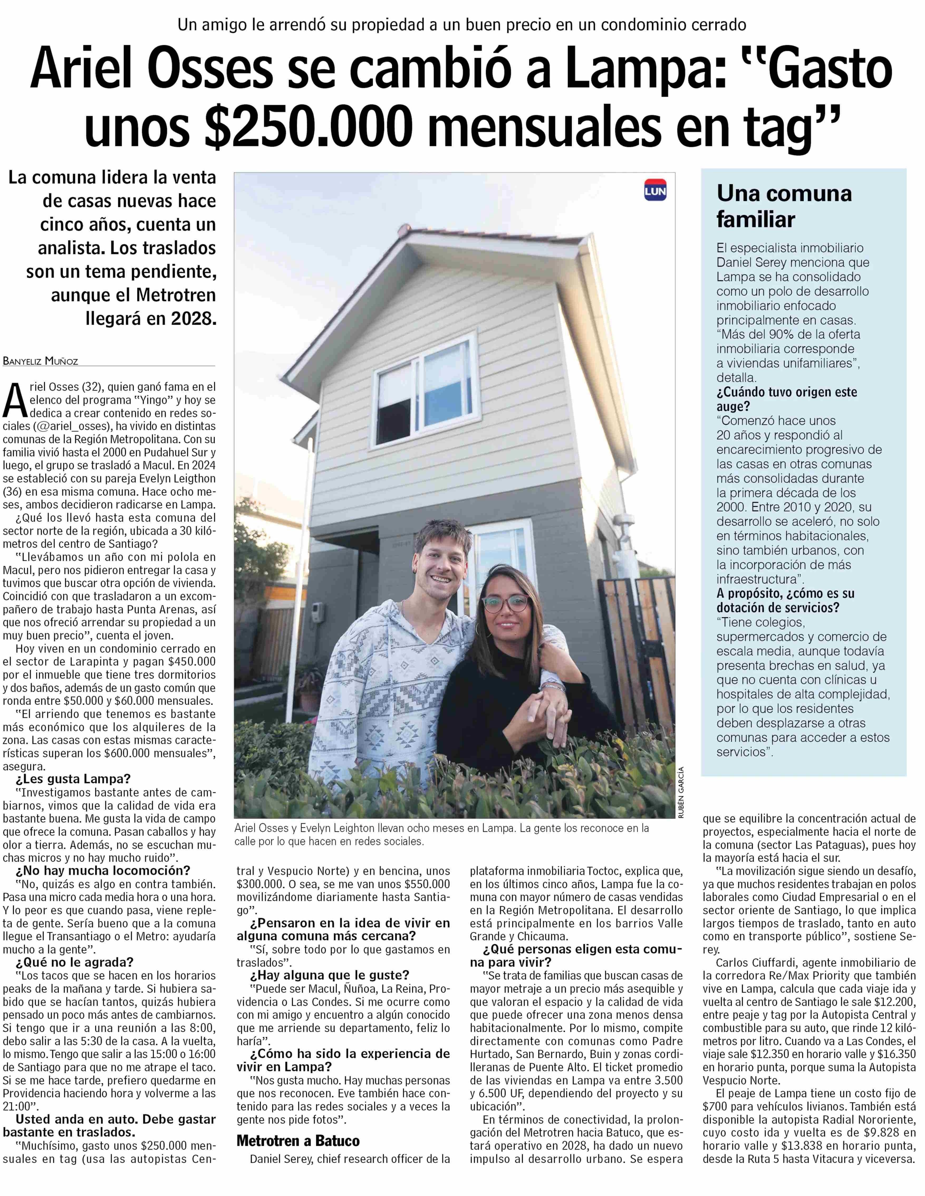 Ariel Osses se cambió a Lampa: "Gasto unos $250.000 mensuales en tag"