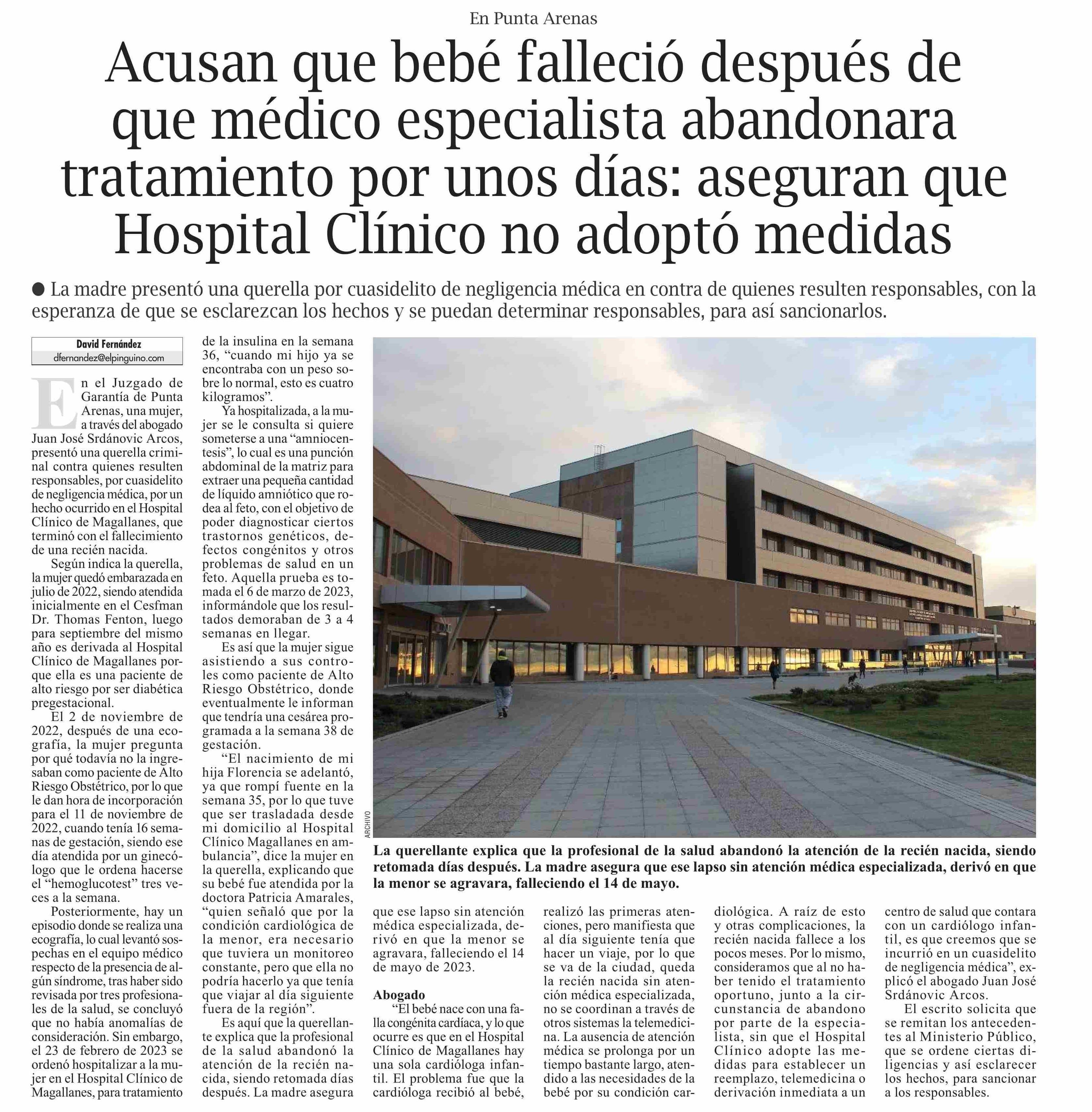 | Título: | Acusan que bebé falleció después de que médico especialista abandonara tratamiento por unos días: aseguran que Hospital Clínico no adoptó medidas |