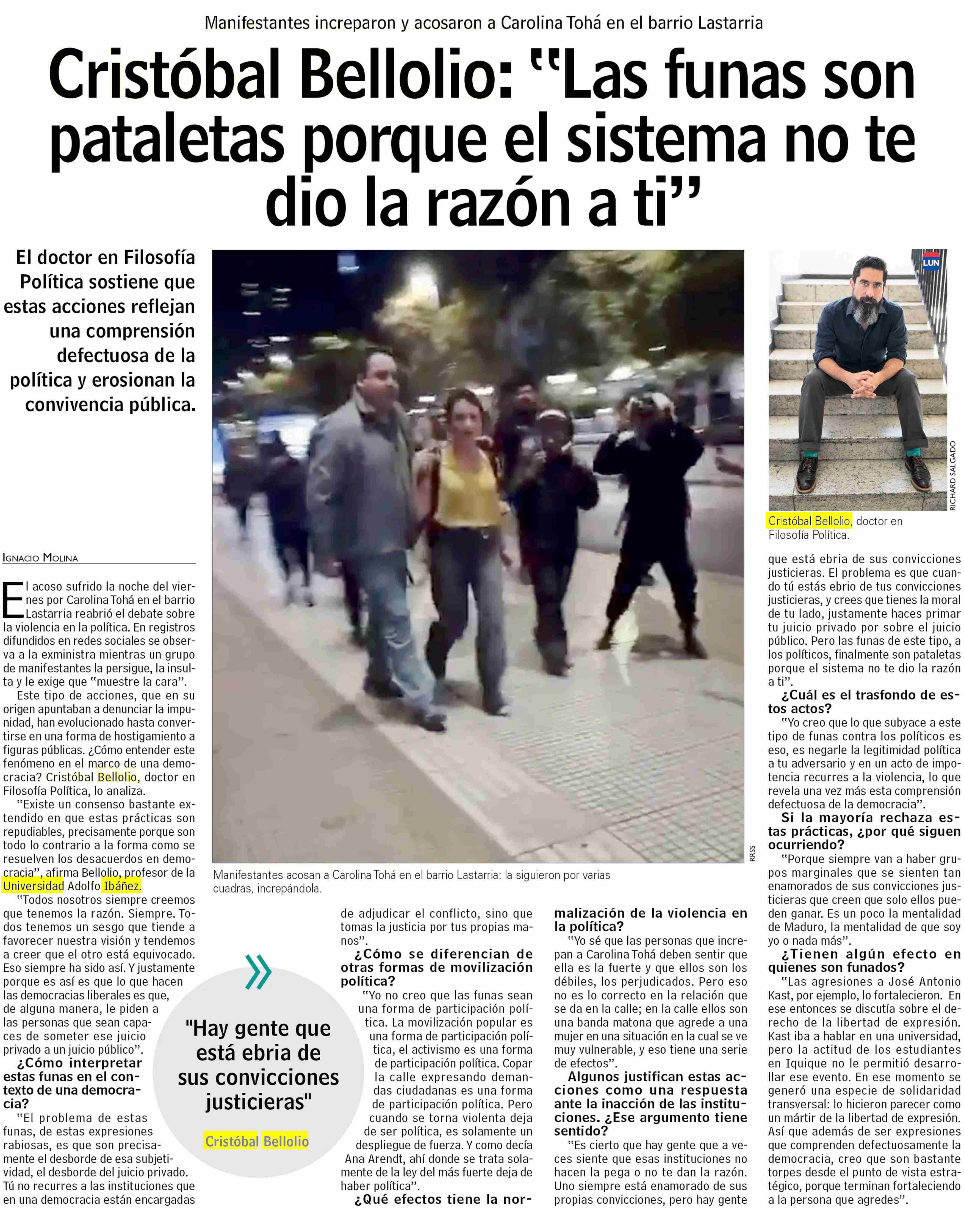 Cristóbal Bellolio: "Las funas son pataletas porque el sistema no te dio la razón a ti”