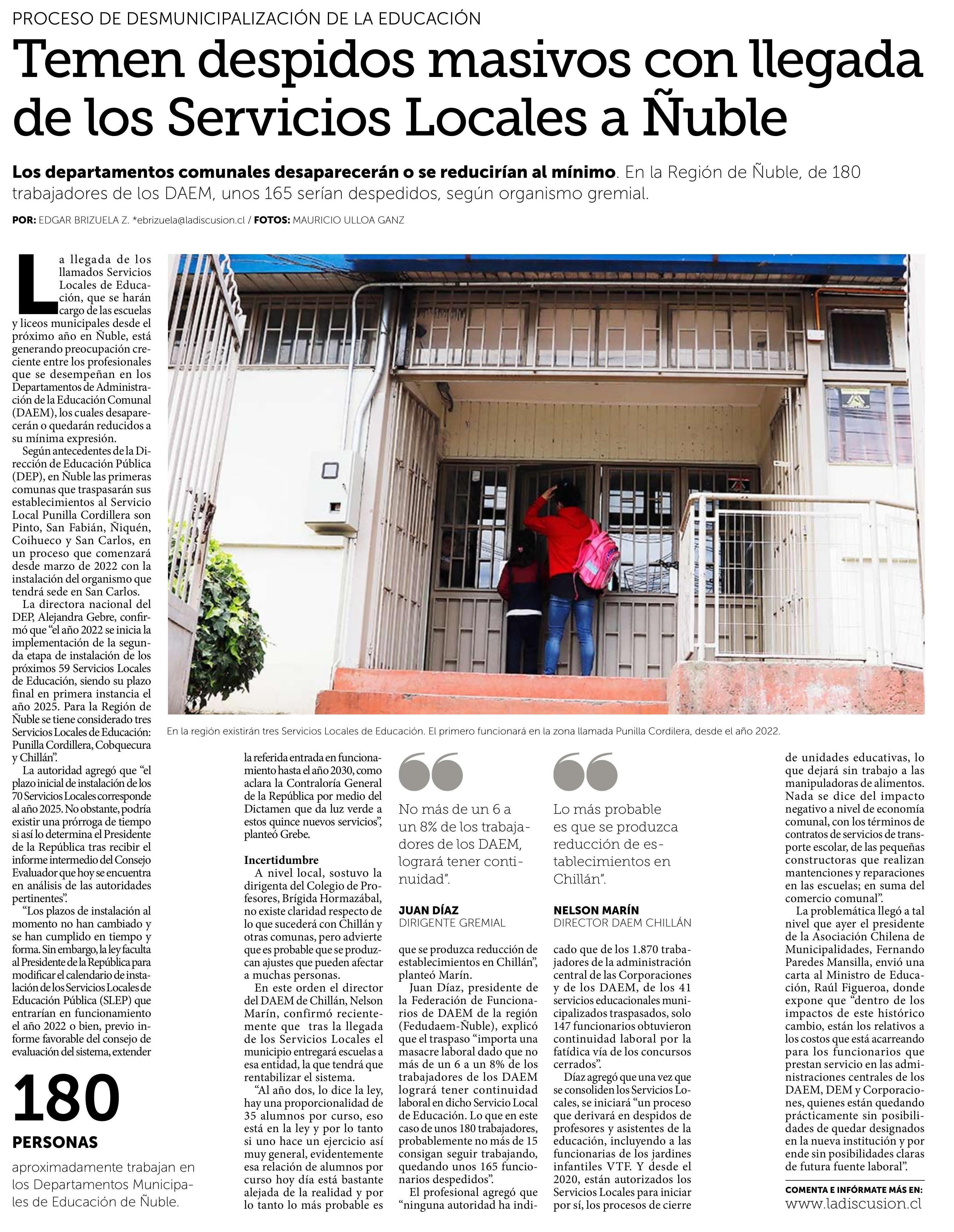 Temen despidos masivos con llegada de los Servicios Locales a Nuble