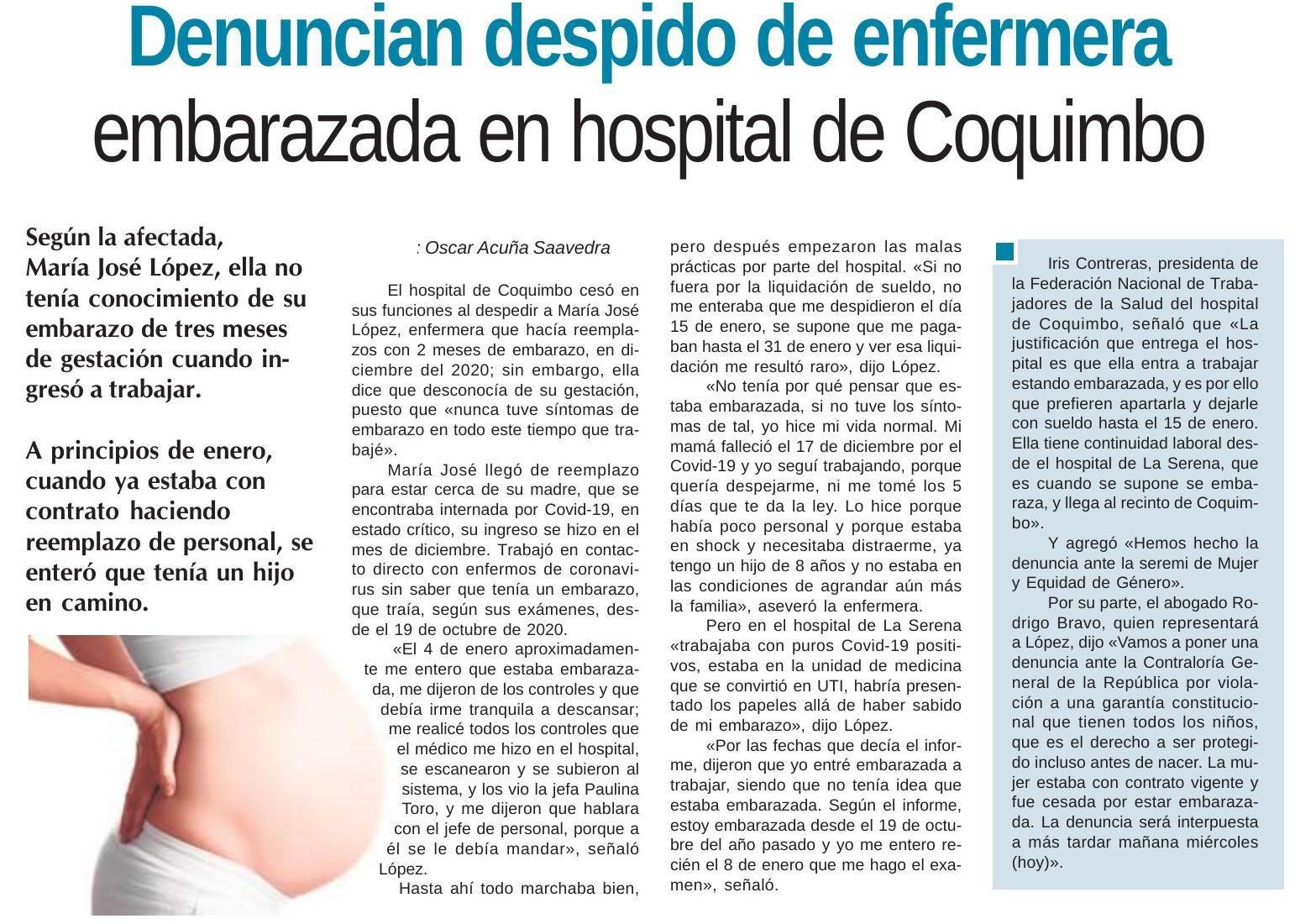 Denuncian despido de enfermera embarazada en hospital de Coquimbo