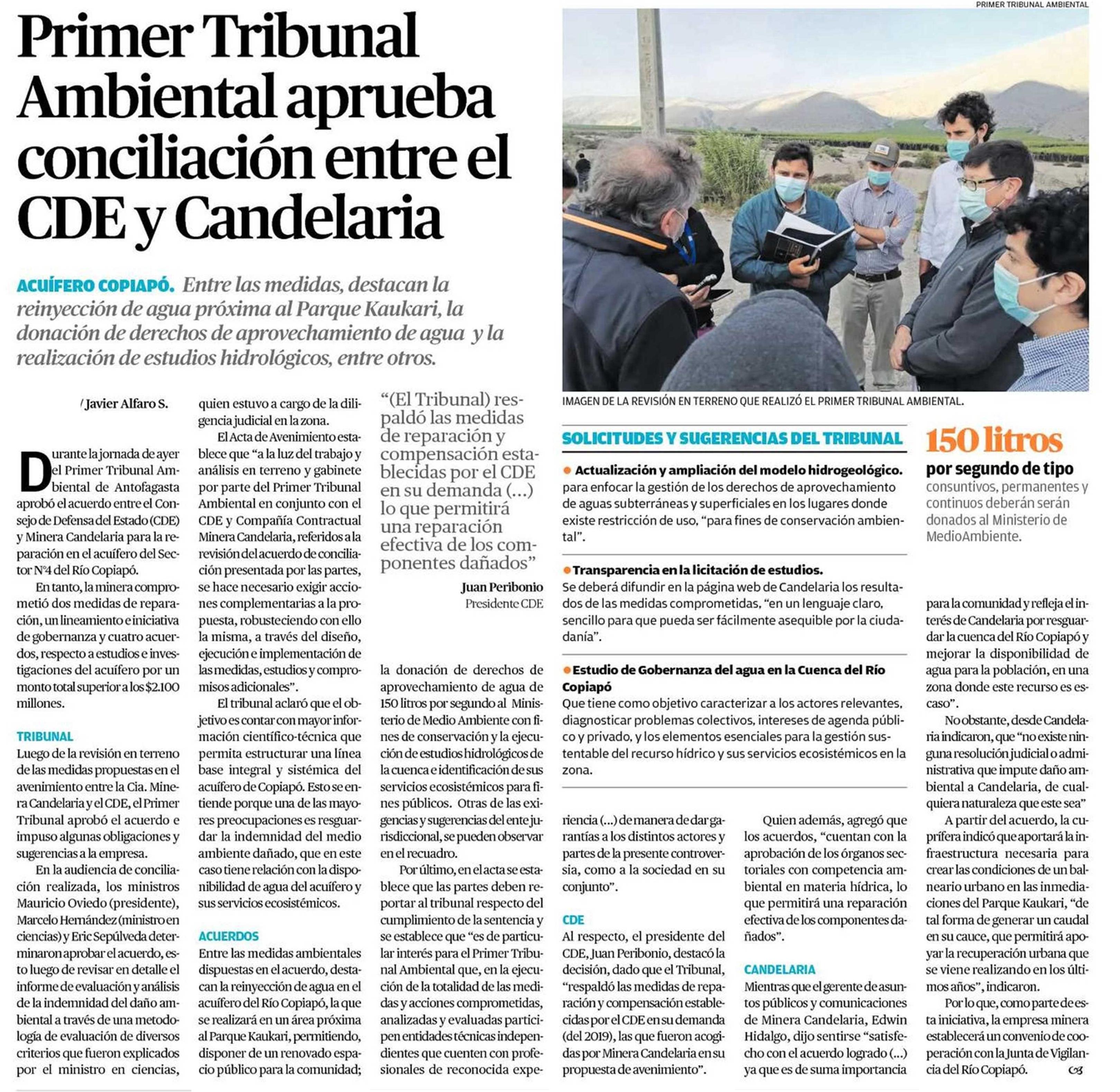 Primer Tribunal Ambiental aprueba conciliación entre el CDE y Candelaria