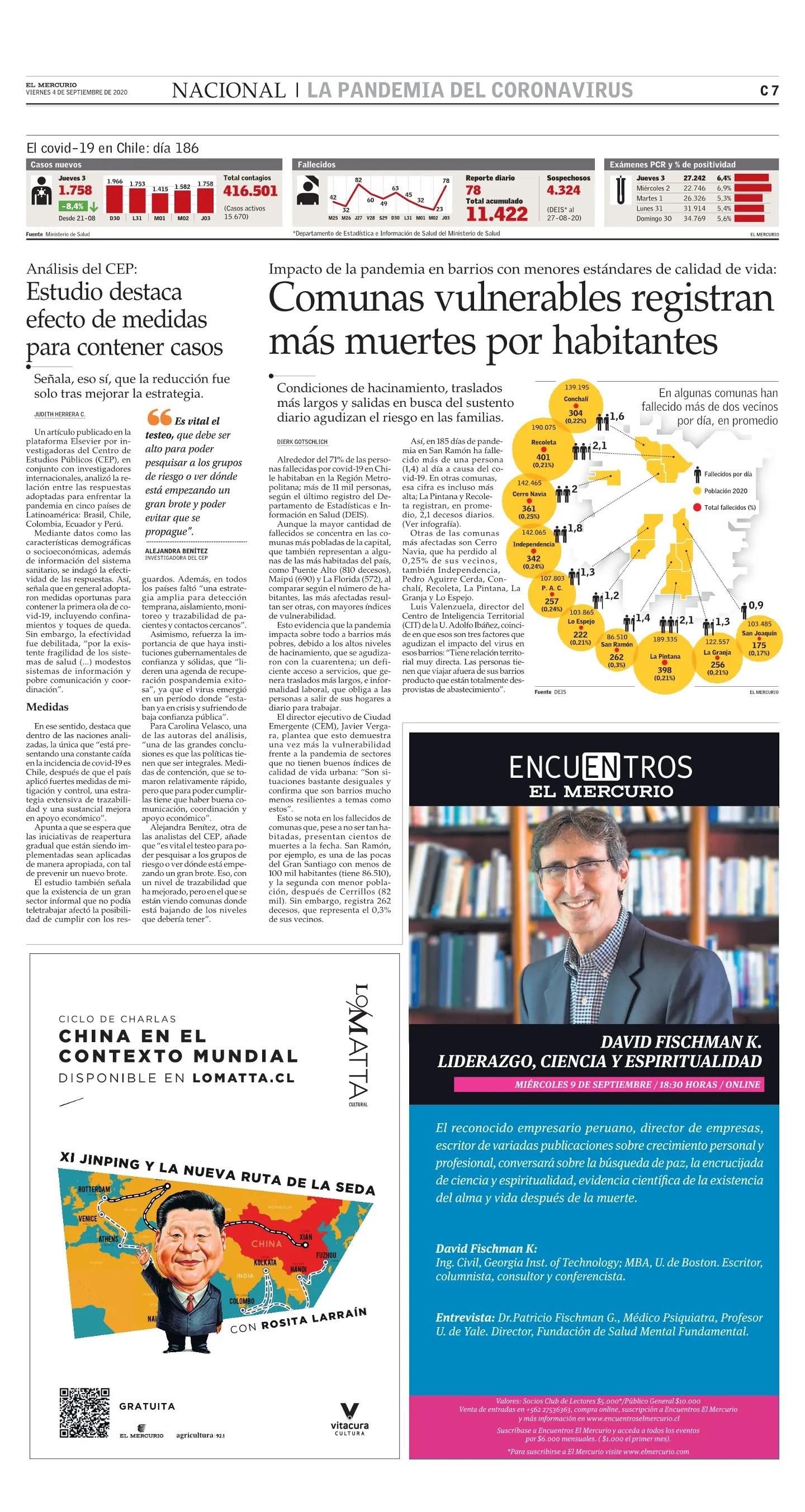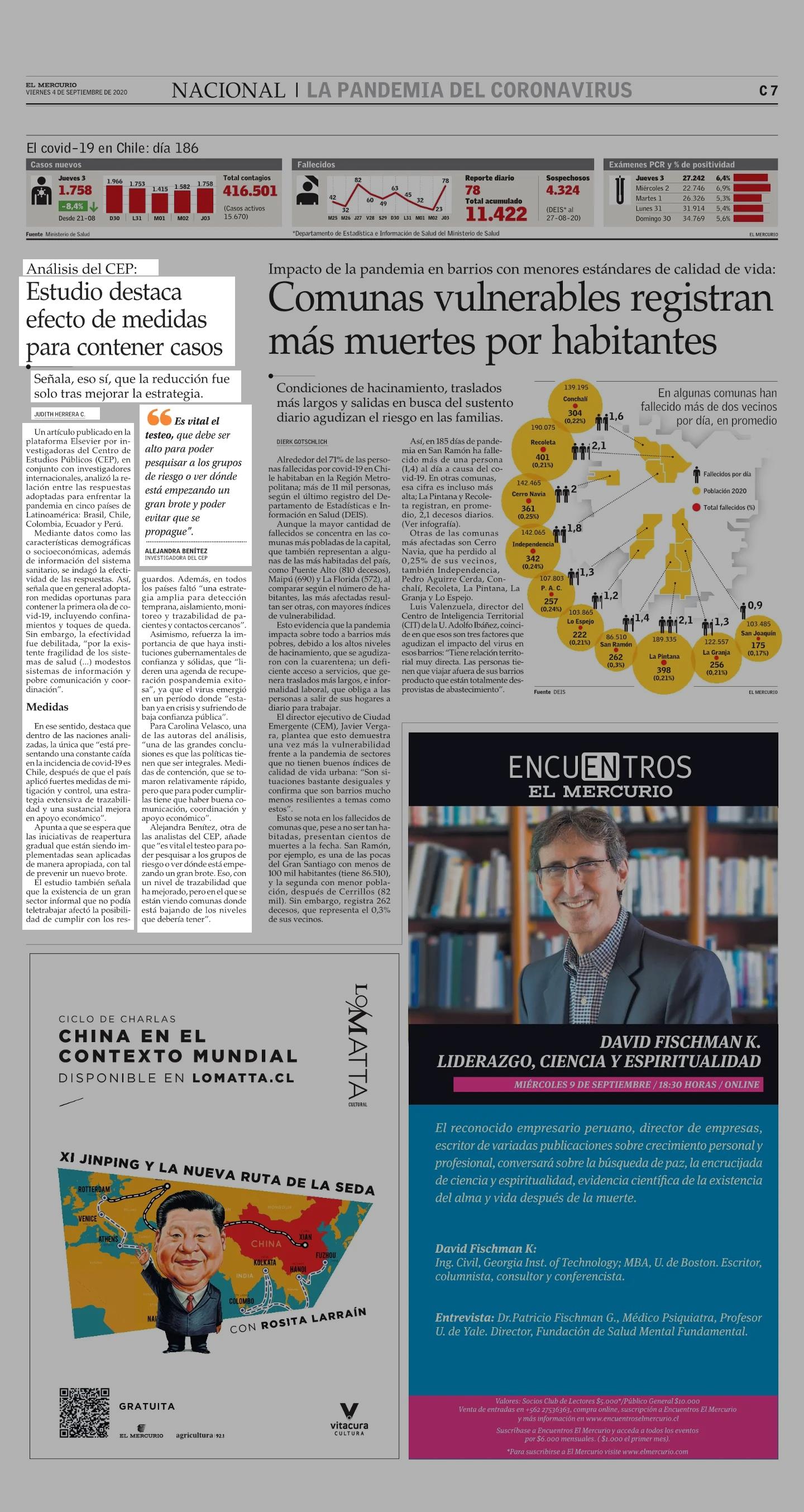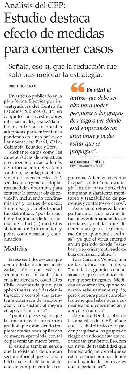 Estudio destaca efecto de medidas para contener casos 04/09/2020 El Mercurio Análisis del CEP: Estudio destaca efecto de medidas para contener casos Señala, eso sí, que la reducción fue solo tras mejorar la estrategia. Un artículo publicado en la platafo... |