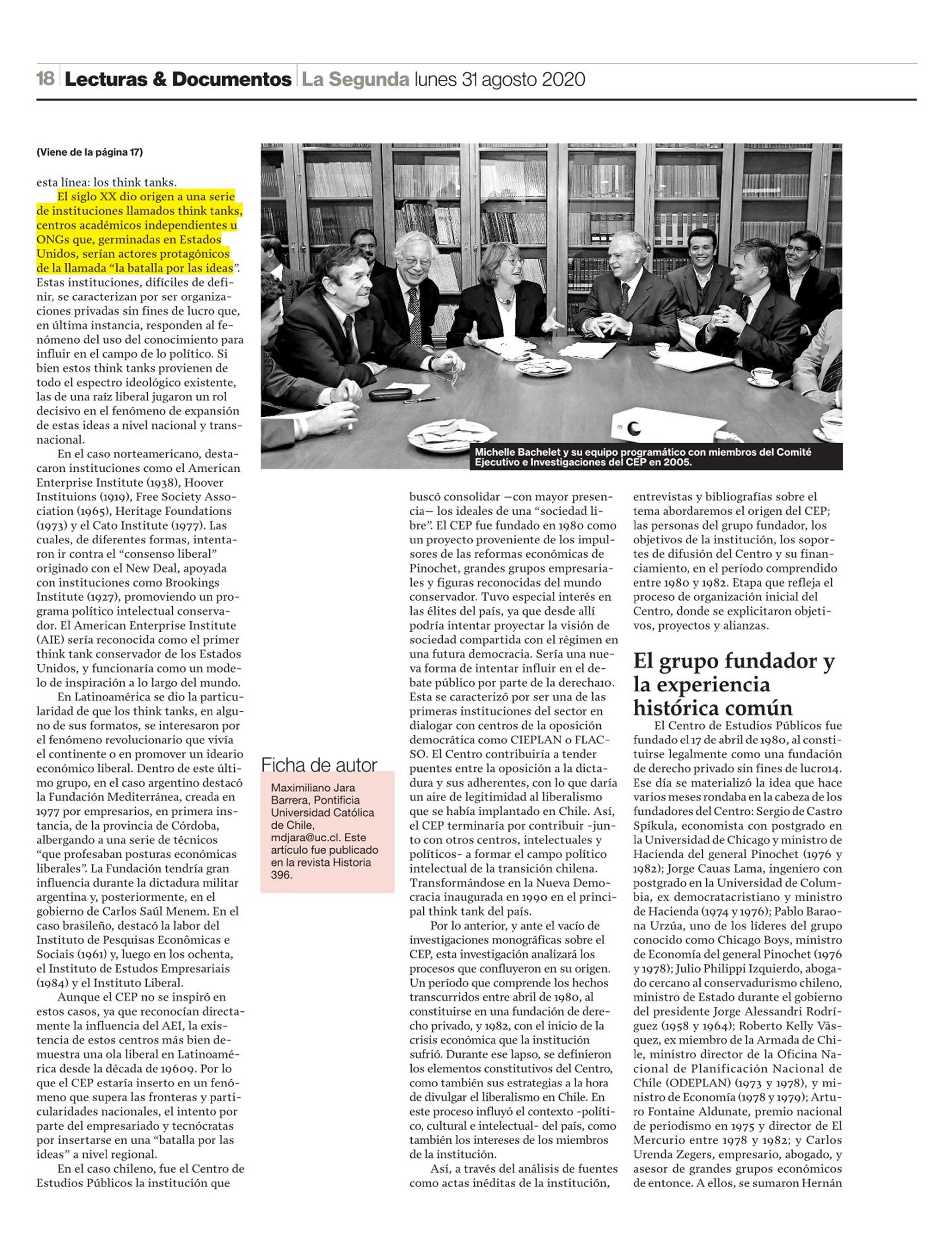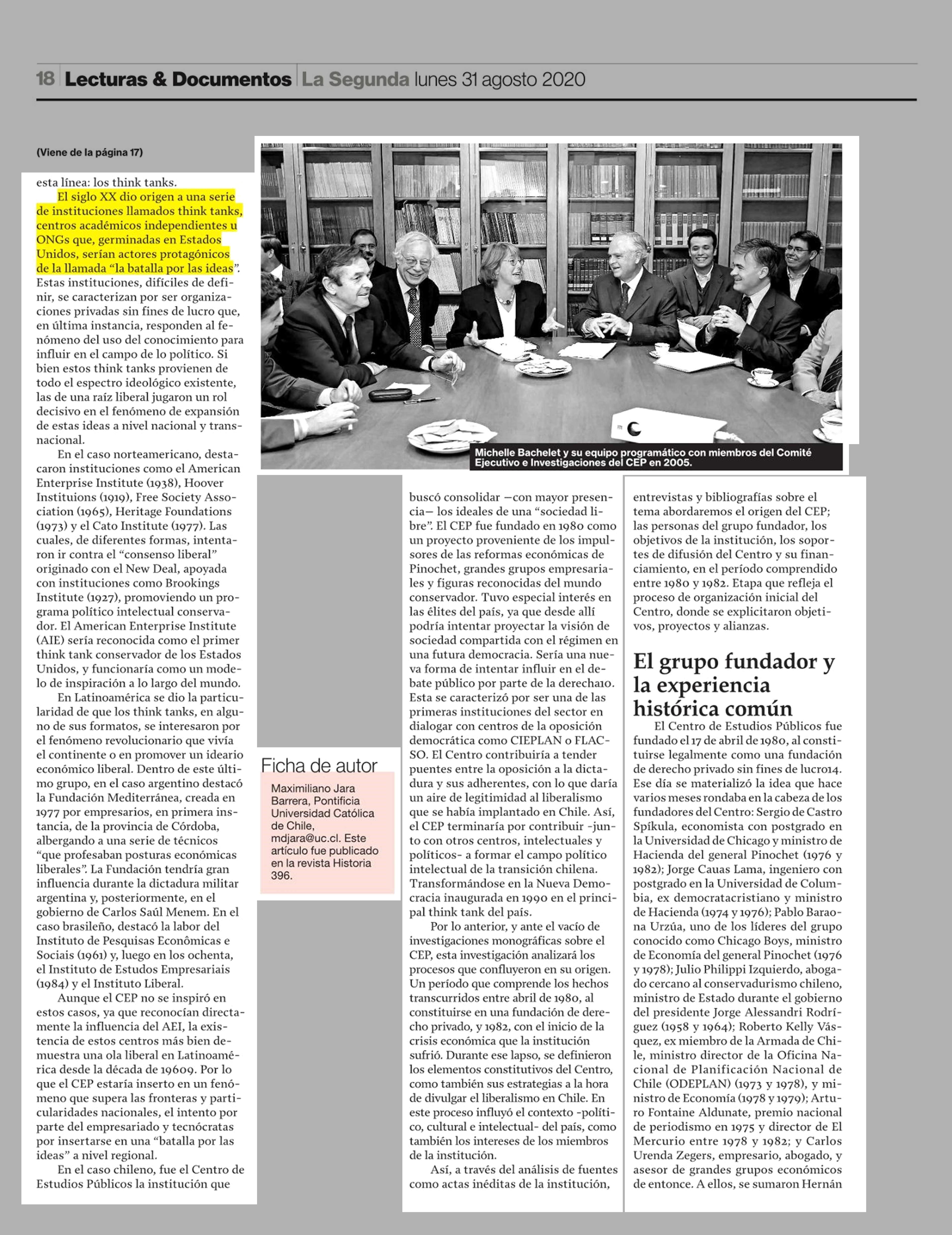 El origen del CEP: Importando el liberalismo para la transición 1980-1982 31/08/2020 La Segunda El origen del CEP: Importando el liberalismo para la transición 1980-1982 El artículo analiza los factores de origen y primeros años del Centro de Estudios Públicos, principal think t... |