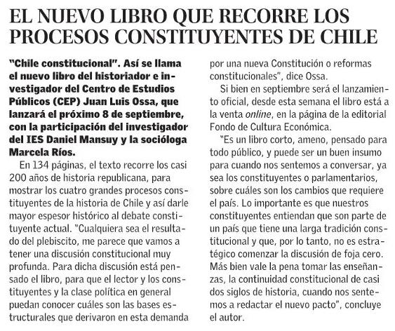 | Título: | EL NUEVO LIBRO QUE RECORRE LOS PROCESOS CONSTITUYENTES DE CHILE |