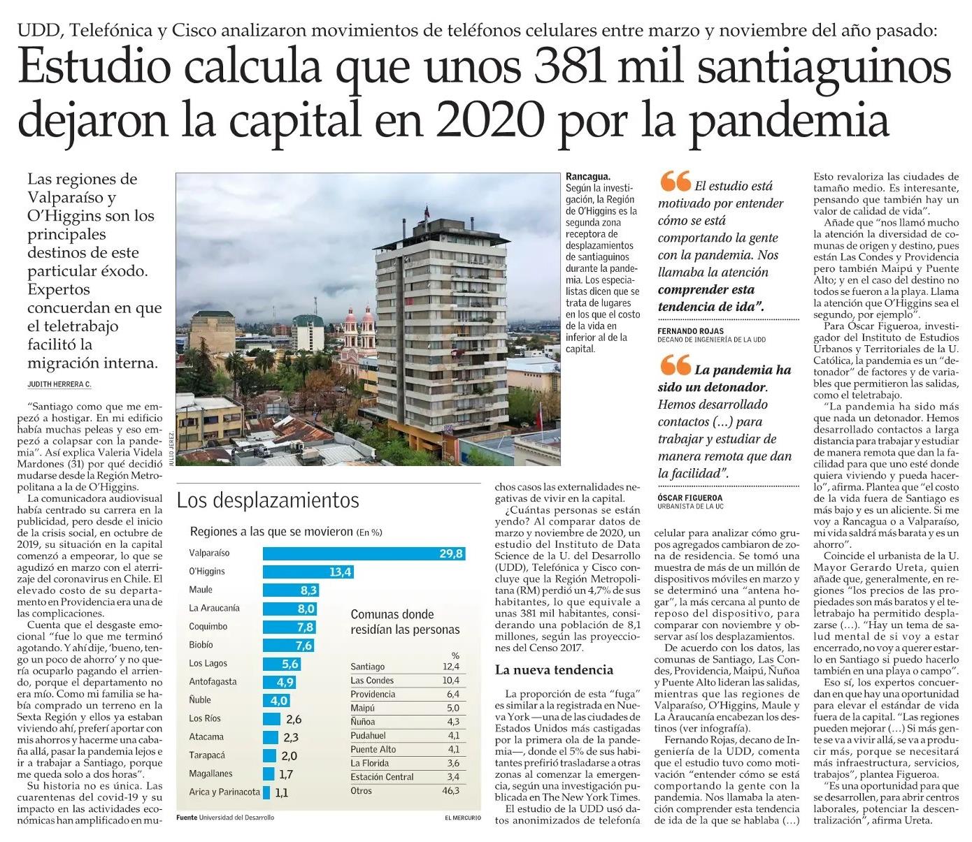 Estudio calcula que unos 381 mil santiaguinos dejaron la capital en 2020 por la pandemia