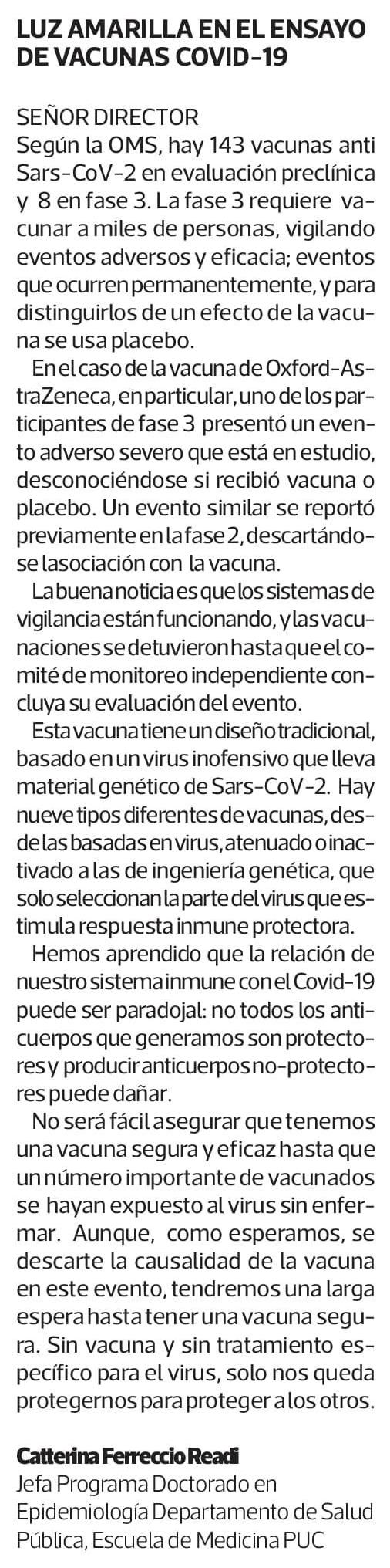 LUZ AMARILLA EN EL ENSAYO DE VACUNAS COVID-19