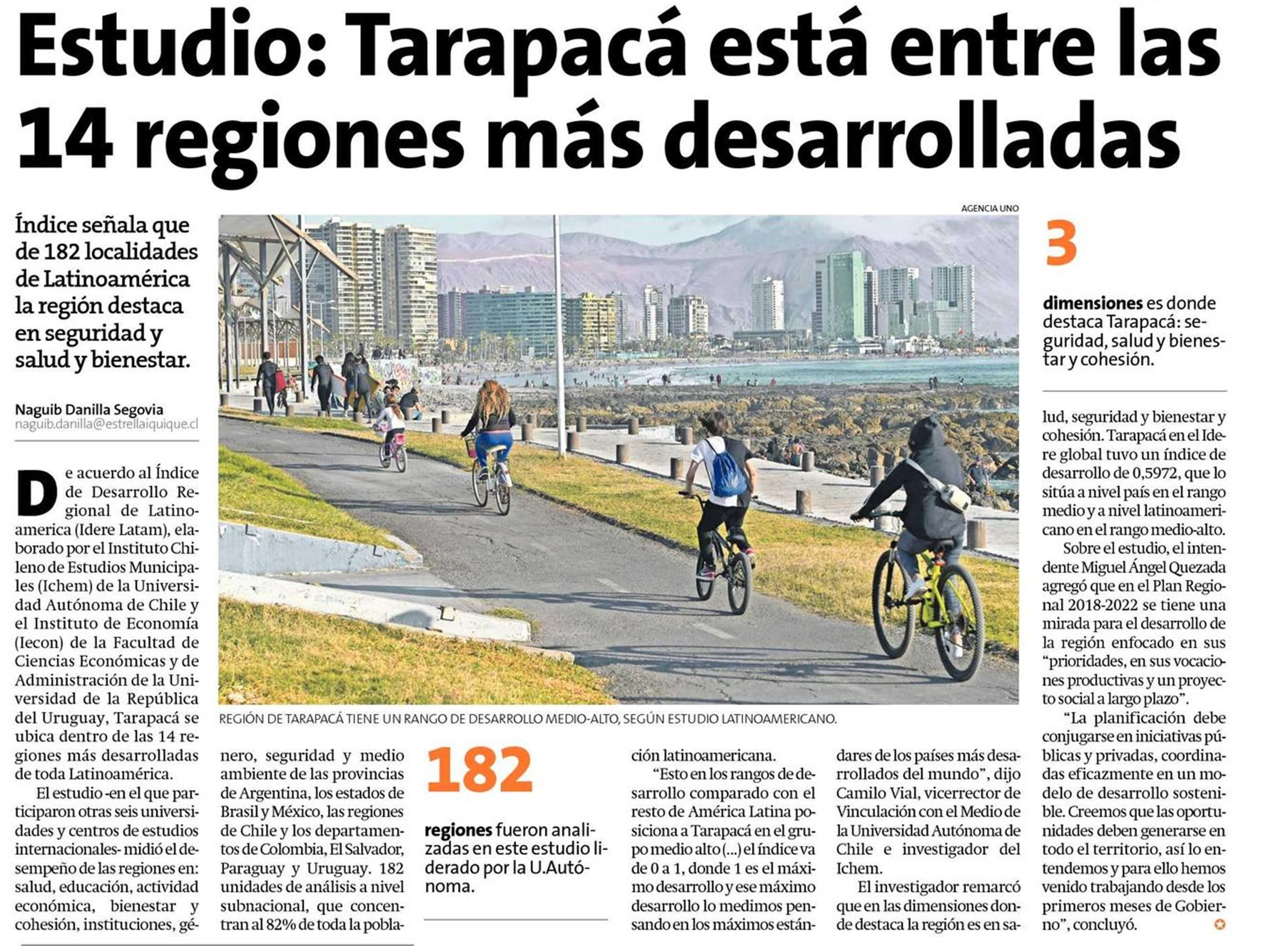 Estudio: Tarapacá está entre las 14 regiones más desarrolladas