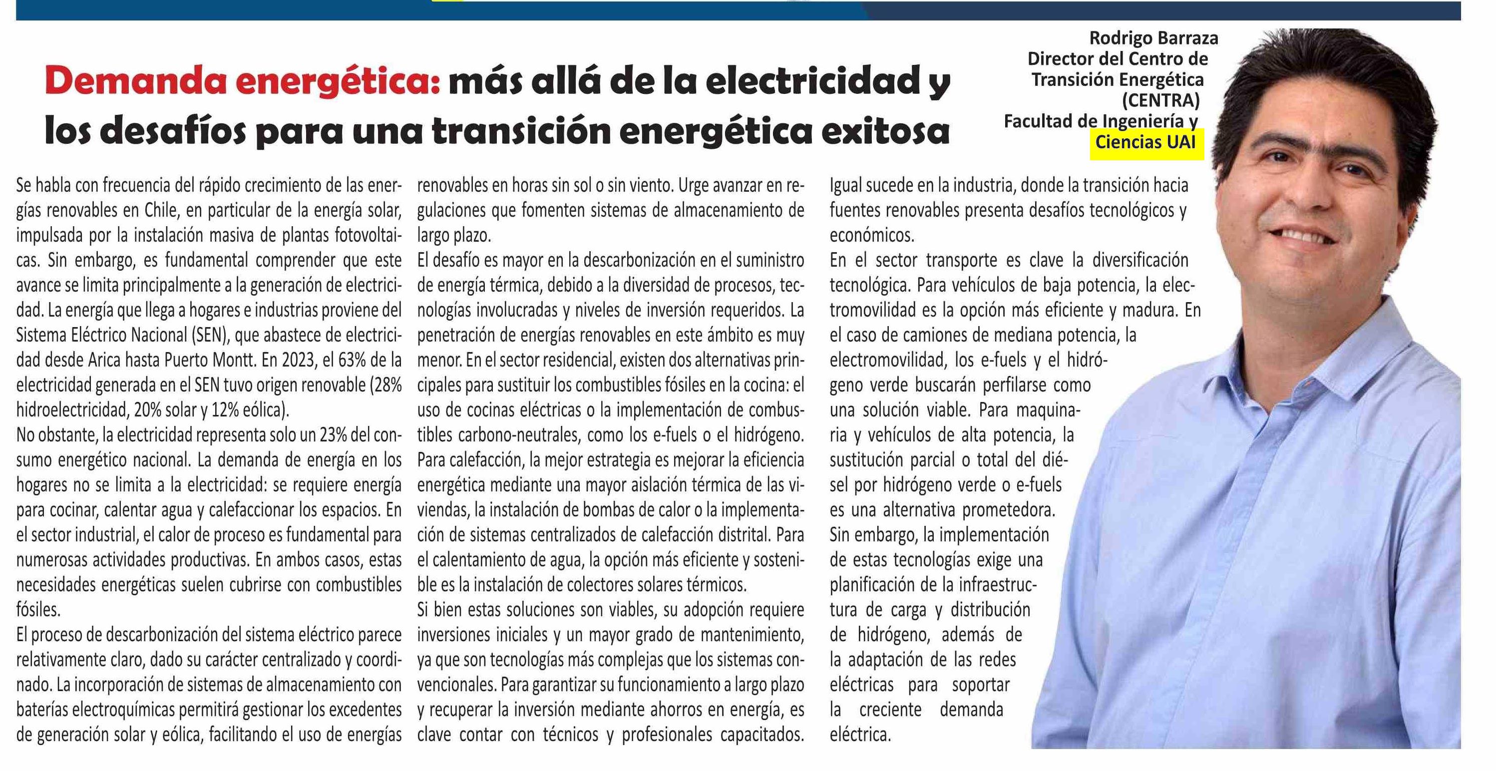 Columnas de Opinión: Demanda energética: más allá de la electricidad y los desafíos para una transición energética exitosa
