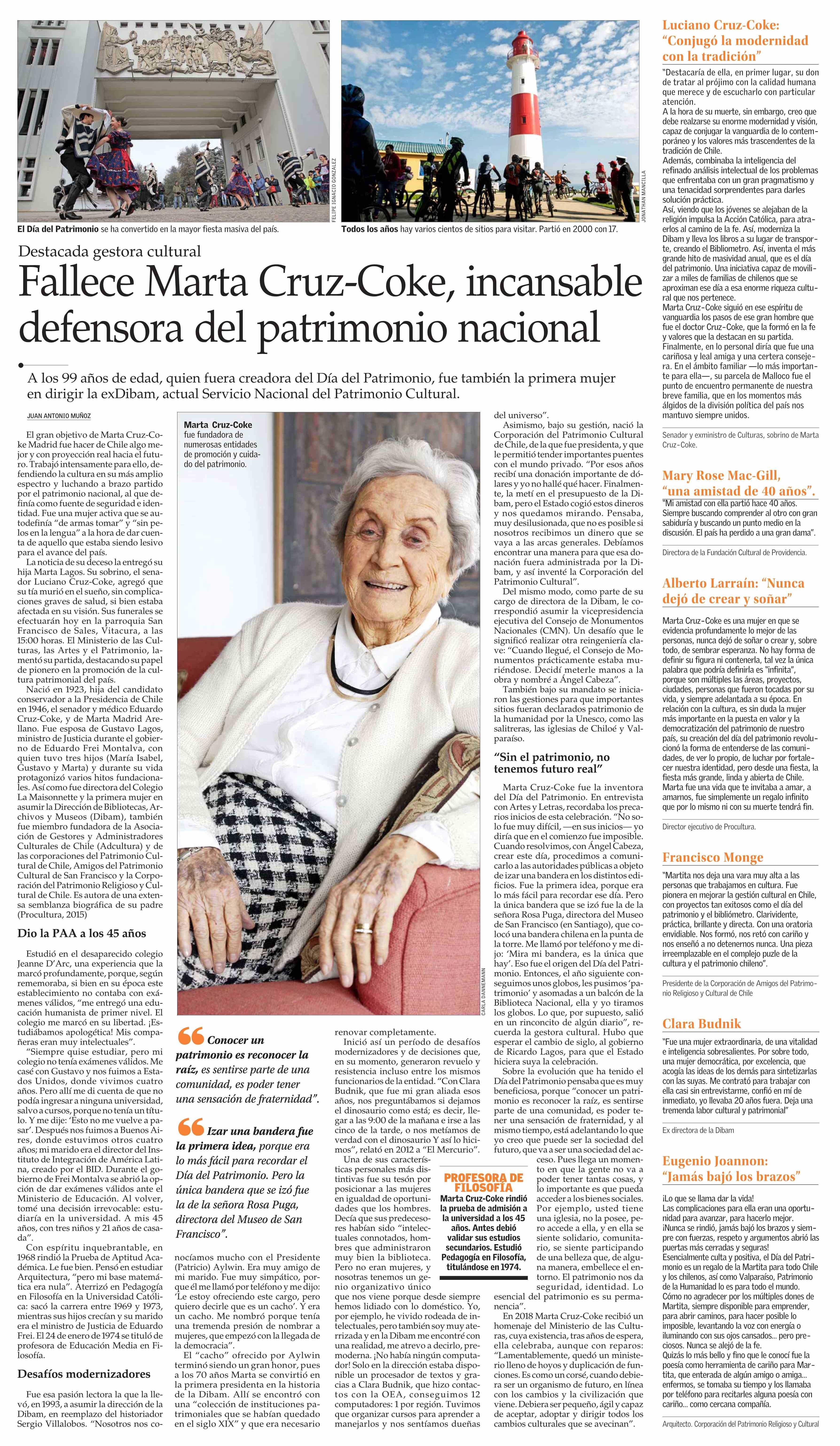 Fallece Marta Cruz-Coke, incansable defensora del patrimonio nacional