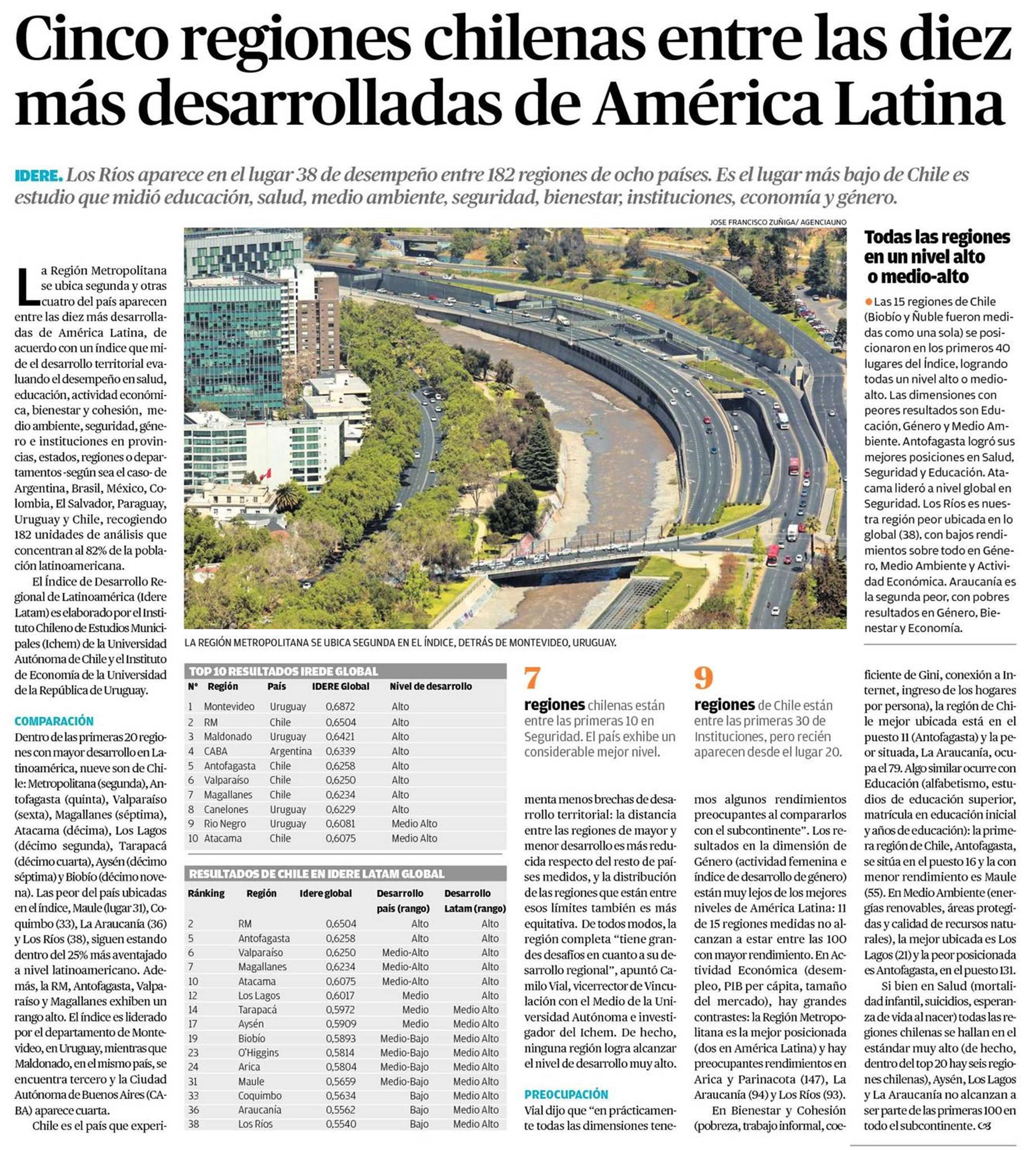 Cinco regiones chilenas entre las diez más desarrolladas de América Latina